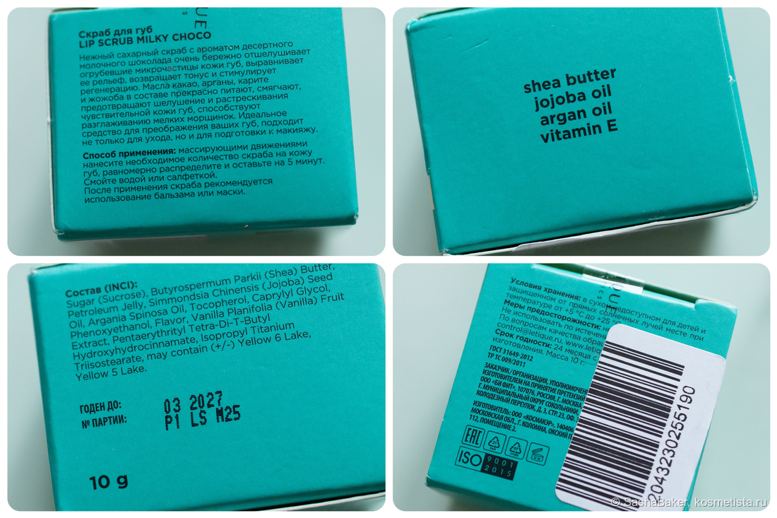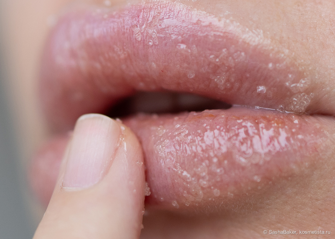 Сам скраб выглядит хорошо, сразу видно, что он на сахарной основе, частички скраба крупные, но нежные, кожу не царапают и не повреждают. Густая консистенция, комфортное распределение. Но для меня сильно много масел, увлажнения я не ощущаю, только масляную пленку на губах. Но вид придает более живой, из за воздействия на кожу трением- кровь приливает к губам.