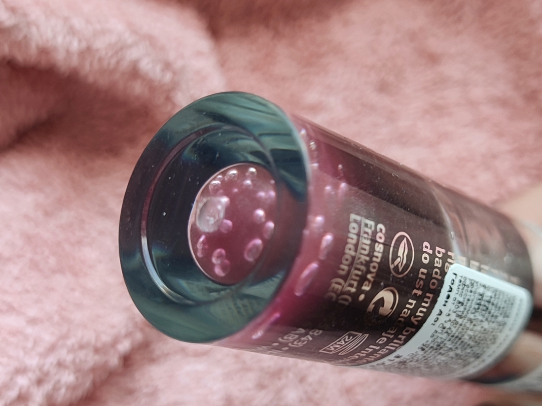 Текстура. Масло плотное, густое и тягучее как мед. Со временем густеет ещё сильнее. Средней липкости. Если присмотреться, можно увидеть кучу шиммера, но он едва уловим на губах. И только при нанесении плотным слоем.