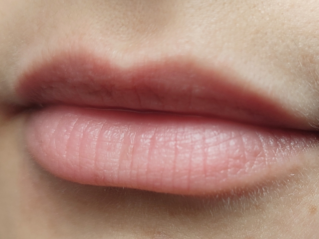 На губы ложиться полупрозрачно, слегка меняя родной оттенок. Придает небольшую холодинку.