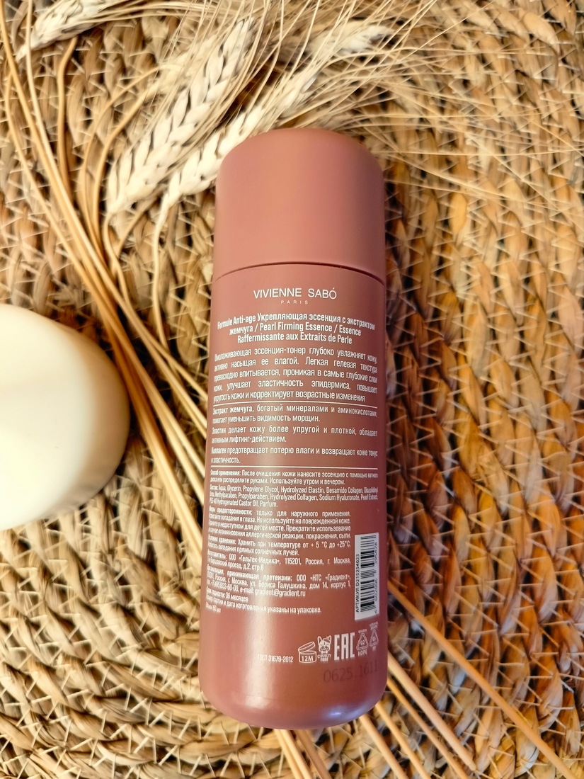 Вот и я не устояла перед новой уходовой линейкой от Vivienne Sabo и решила приобрести один из продуктов, чтобы составить своё мнение. Мой выбор пал на укрепляющую эссенцию для лица Formule Anti-Age с экстрактом жемчуга Vivienne Sabo. Производитель обещает, что эссенция-тонер будет глубоко увлажнять кожу и насытит её влагой, проникая в самые глубокие слои эпидермиса.