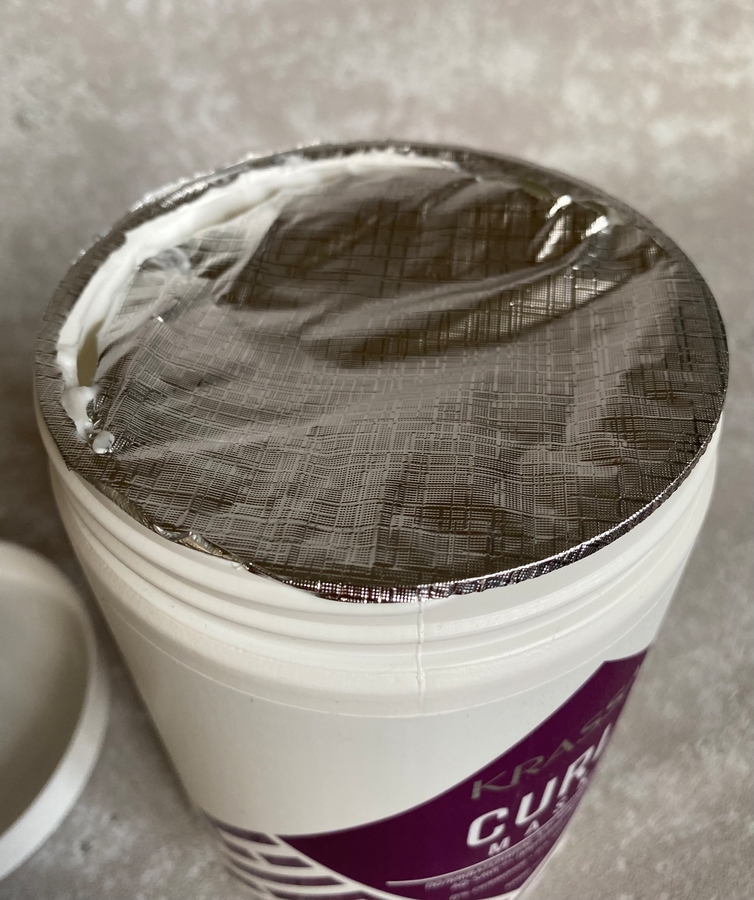 Маска продаётся в огромной банке объёмом один литр, с моим темпом использования мне бы её хватило на несколько лет))) Банка сделана из плотного, непрозрачного, белого пластика с откручивающейся крышкой. Под крышкой есть надёжная фольгированная защитная мембрана.