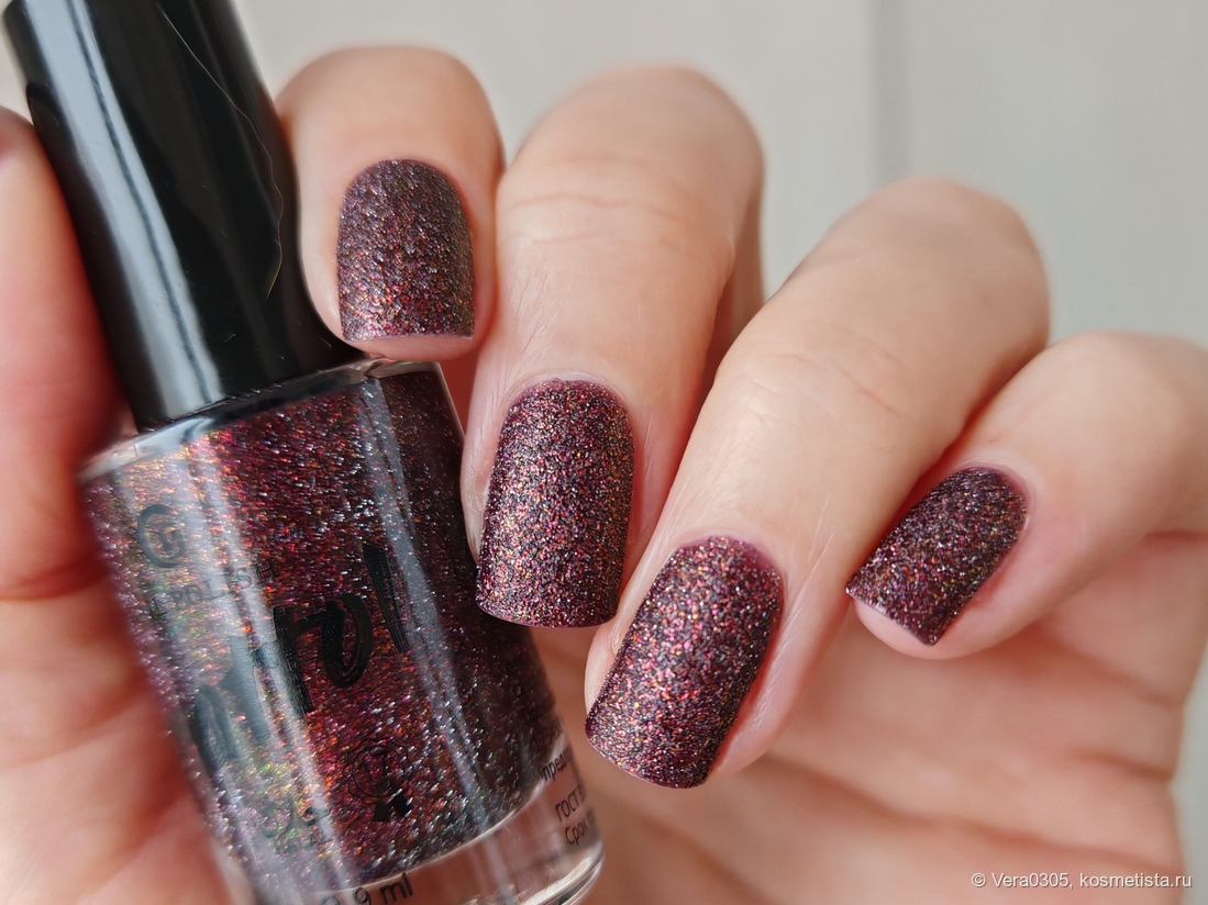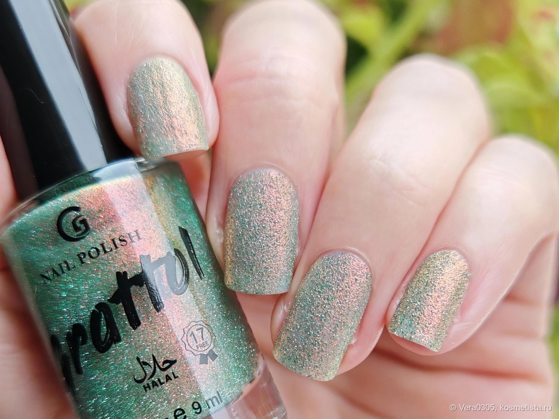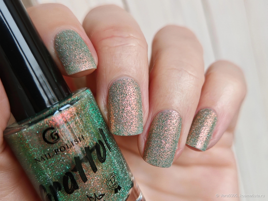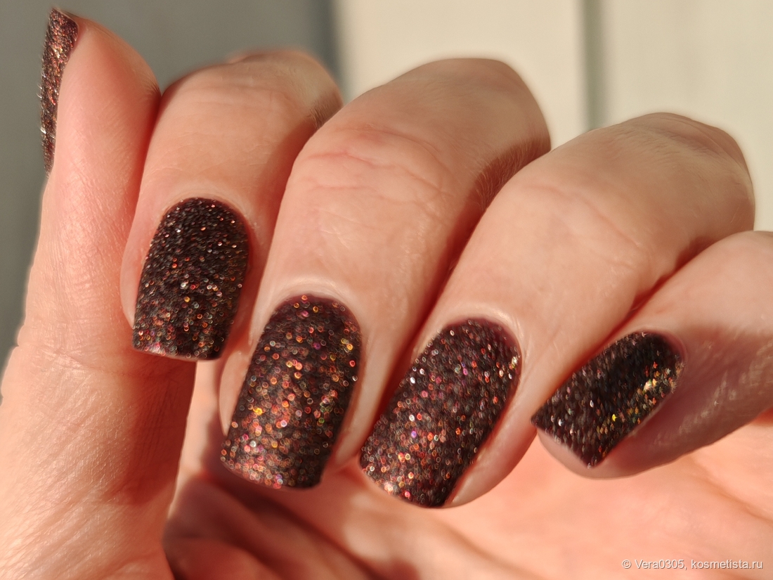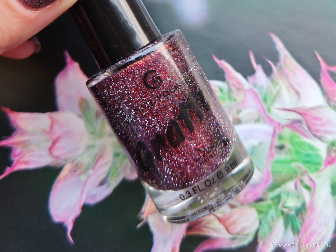 Крамера не передаёт свекралочку, в жизни лак искрится, как новогодняя игрушка. Но за счёт глубокого тёмного цвета все же не выглядит аляписто.