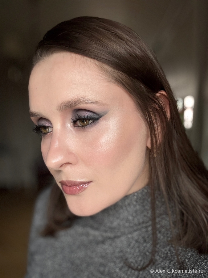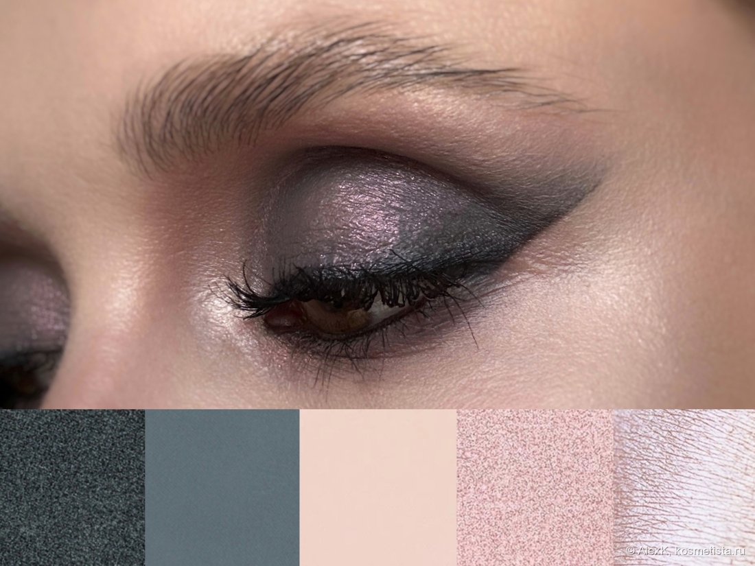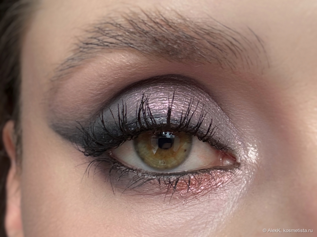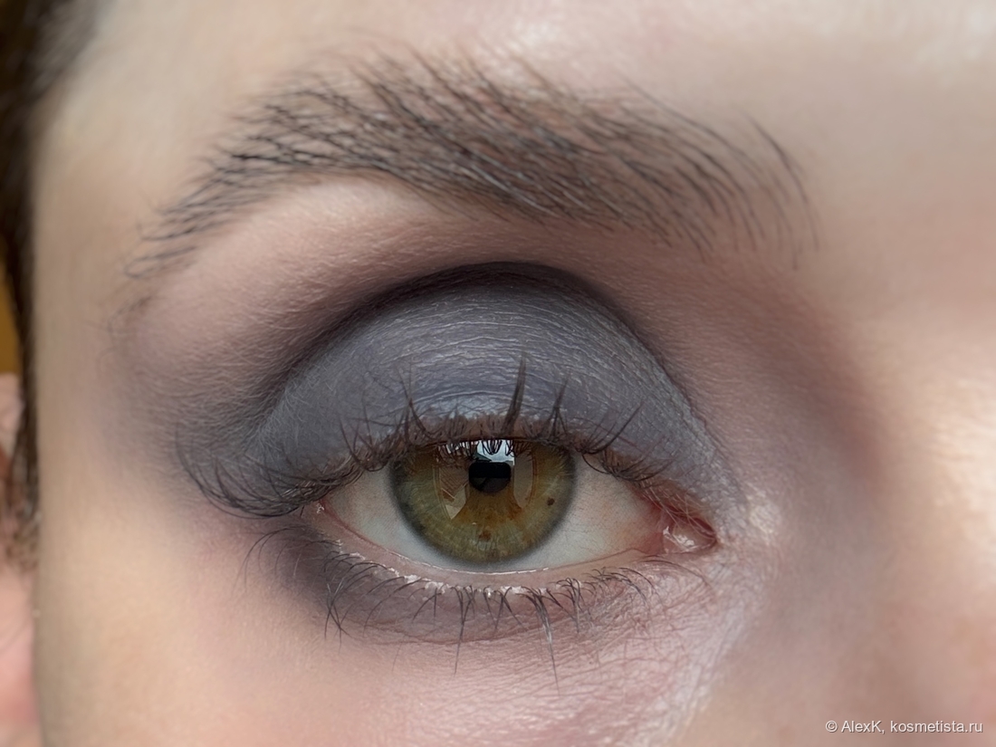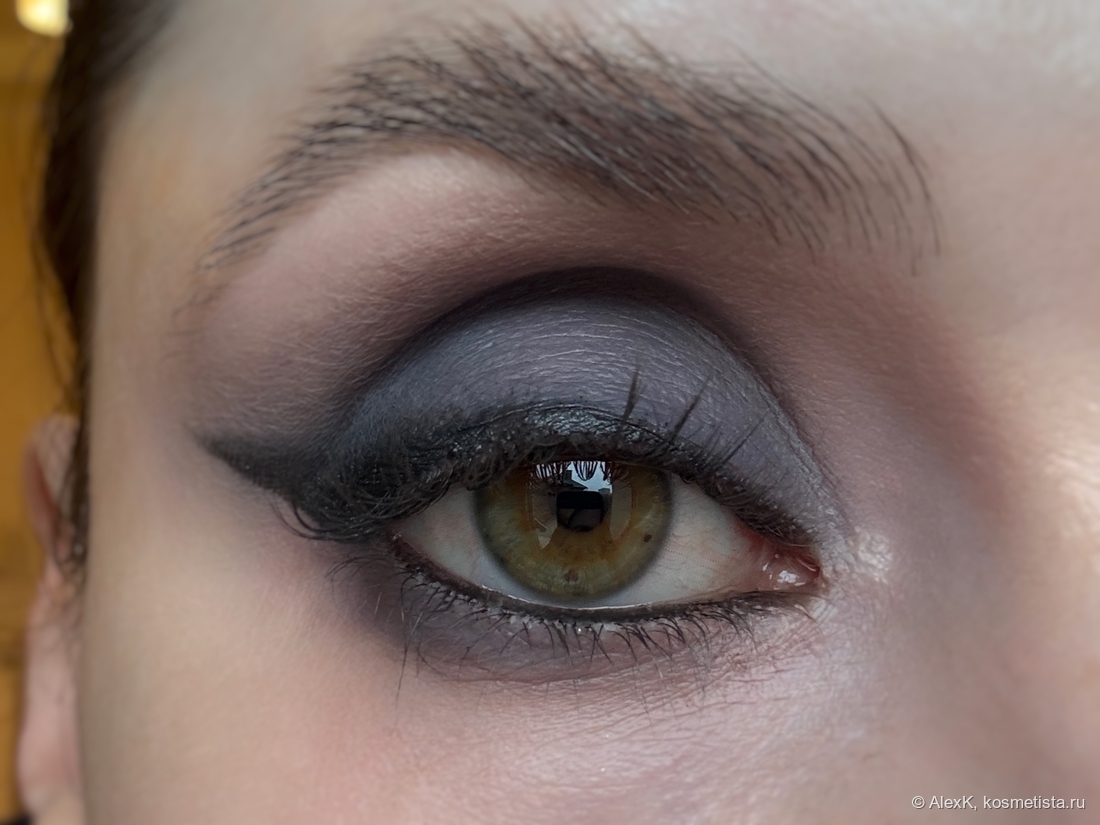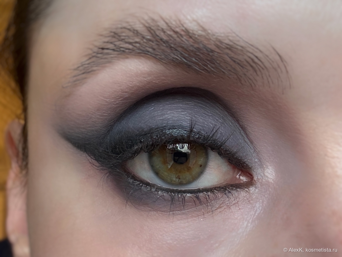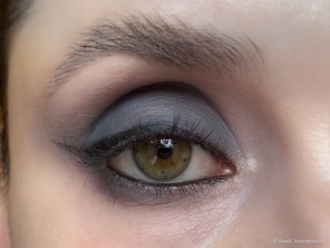 Сделала растушеванную стрелку поверх карандаша. В этом помог пигмент №151 Советница мглы (из Волка). Темно-серый, почти черный сатин.
