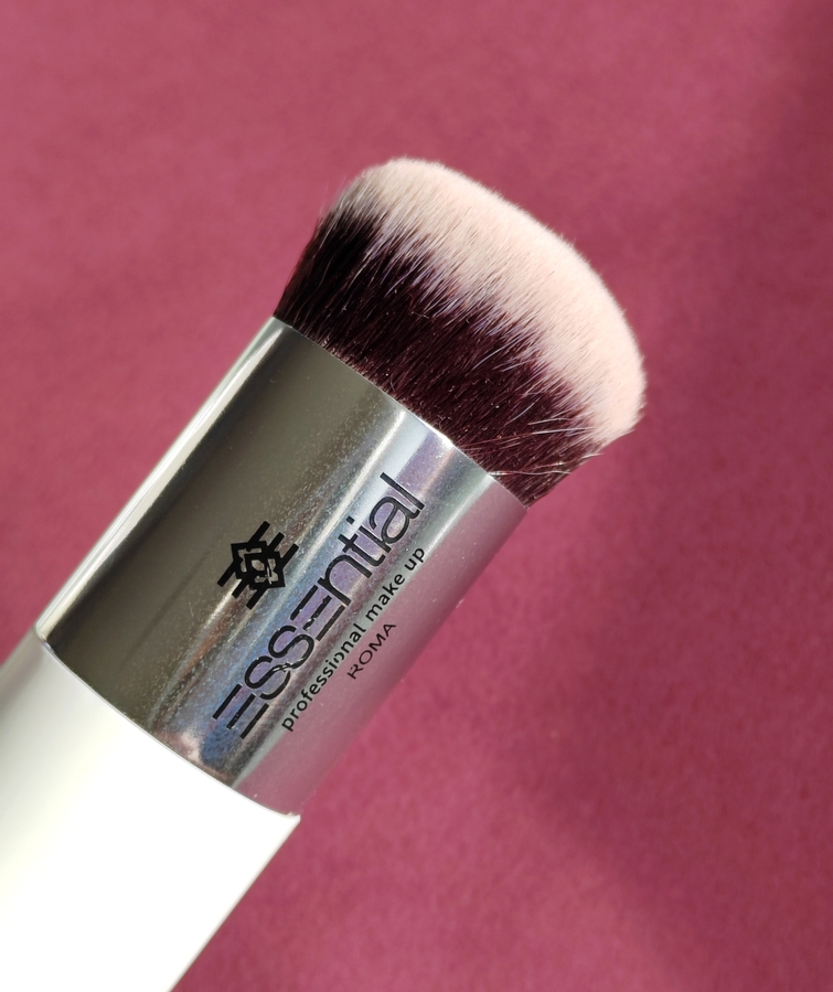 Ворс короткий, плотно набитый. Очень нежный к нашей коже лица — не колется, хорошо наносит тональную основу, тонким слоем, не оставляя за собой разводы! А ещё, эта кисть будто создана для распределения муссовых румян!
