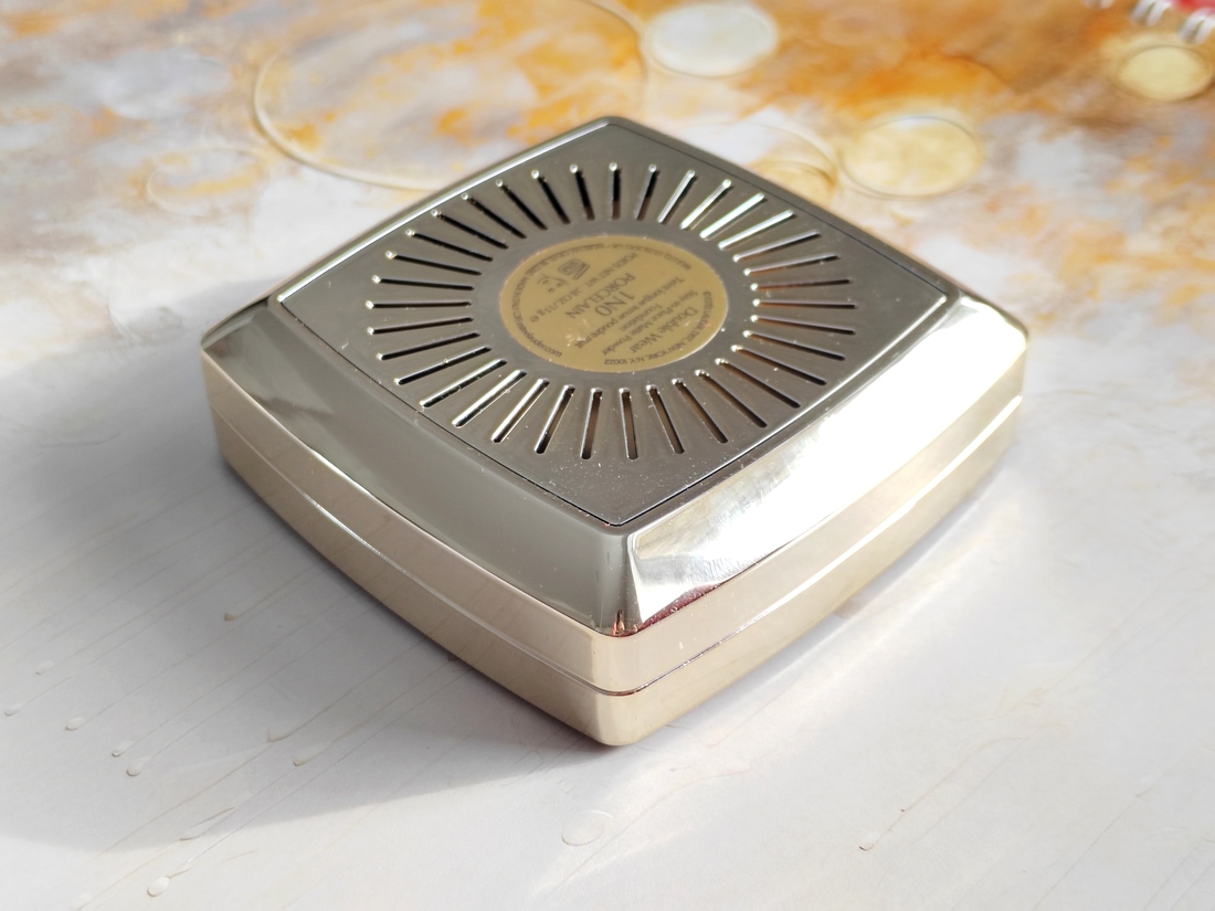 Внутри футляра имеется второй отсек, с вентиляцией, где можно положить пуховку для пользования пудрой вне дома.