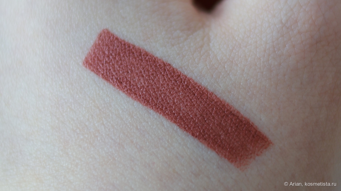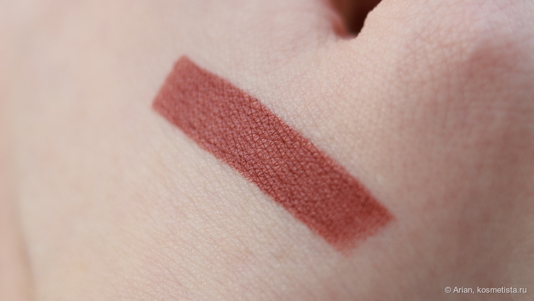 Финиш у помады матовый, но не наглухо, ближе к кремовому. Очень заметна плотная текстура.