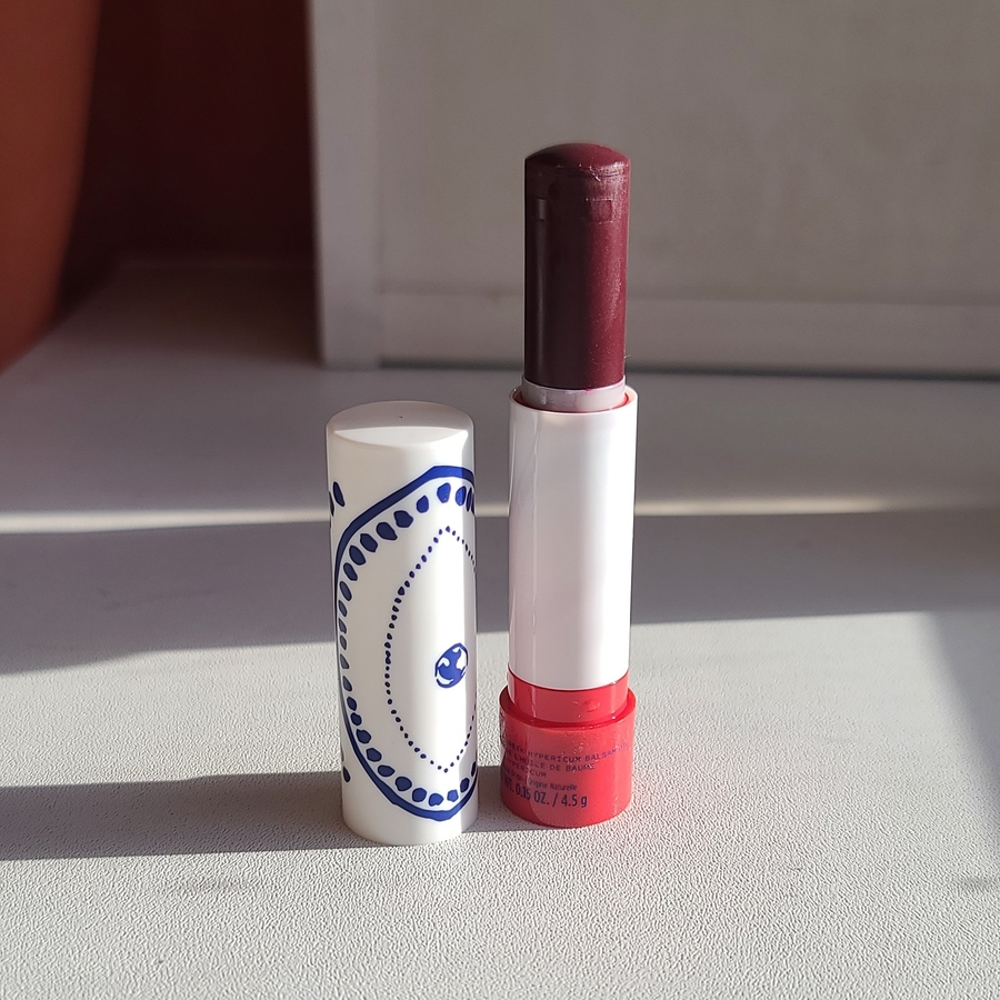 Бальзам имеет приятный ягодный аромат и дает насыщенный красный оттенок. Лично для меня цвет оказался чуть ярковат для повседневного ношения, но смотрится очень красиво и свежо — идеально для завершения вечернего образа.