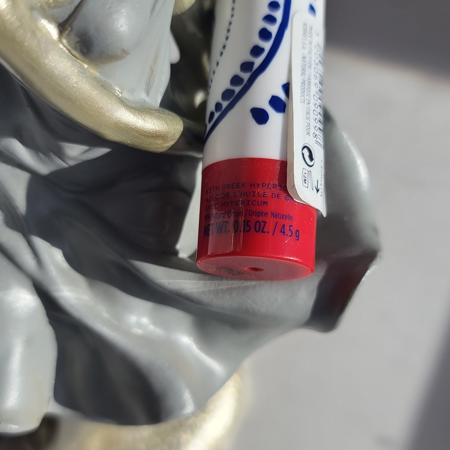 Основу составляет натуральный экстракт шелковицы, известный своими регенерирующими свойствами. Формула обогащена маслом греческого зверобоя — это настоящая находка для питания и заживления кожи губ. Особенно радует, что состав на 97% состоит из ингредиентов натурального происхождения, а также отсутствуют силиконы, парабены и минеральные масла.