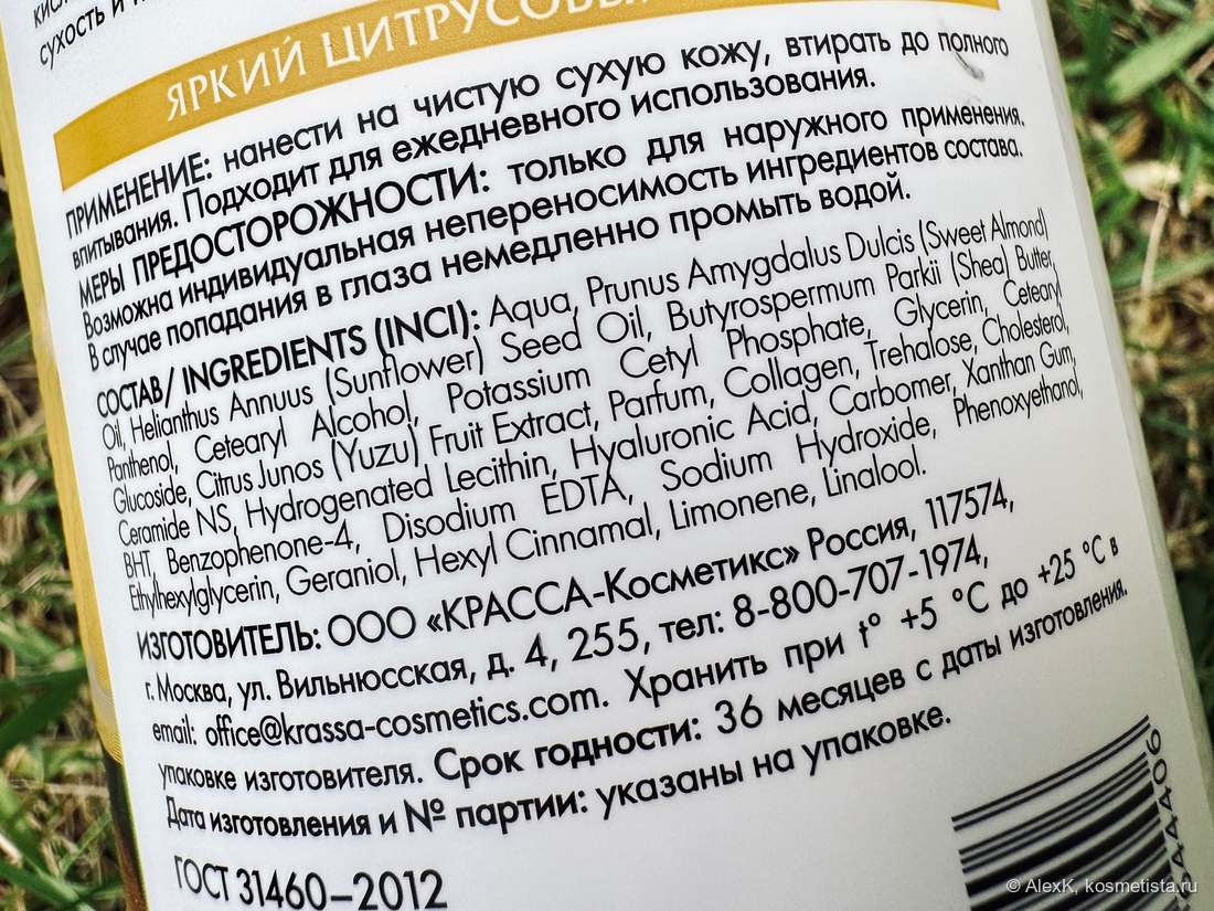 А теперь посмотрим на Ламеллярное молочко для тела Krassa Yuzu Aroma.