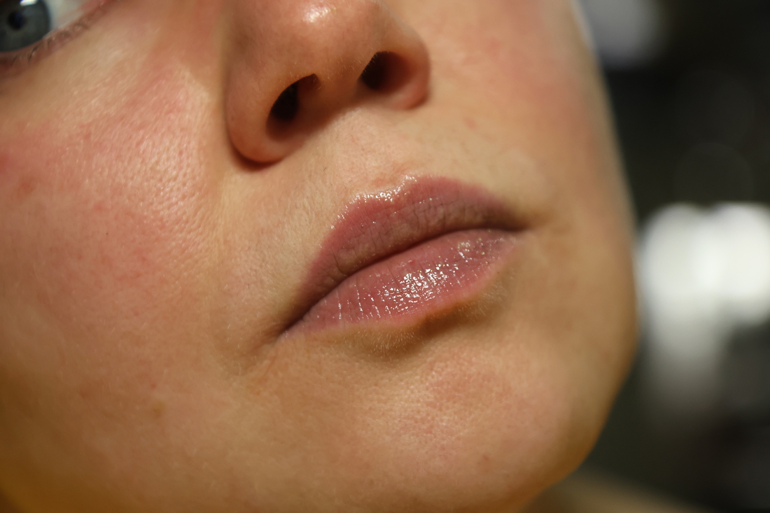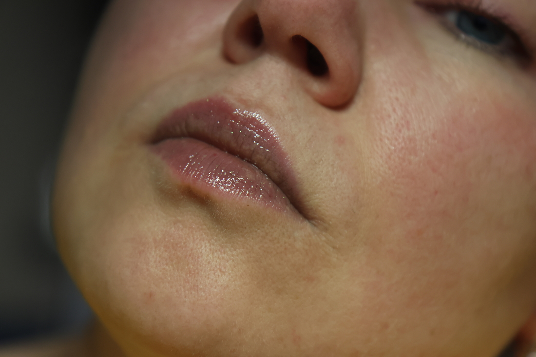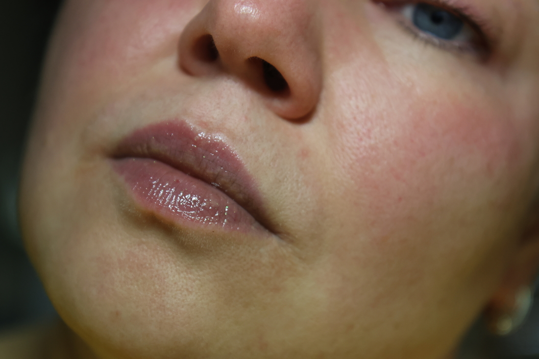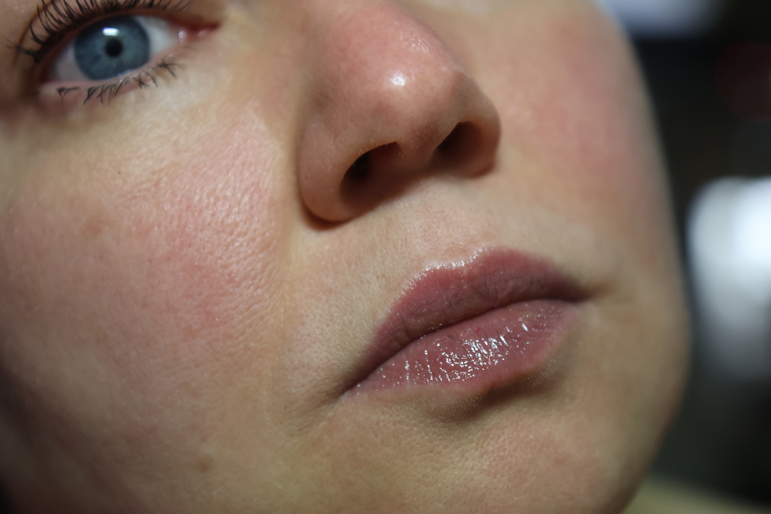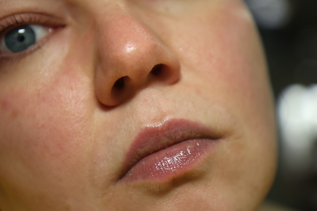 Шиммеринки на губах не заметны практически, а вот оттенок заметен. Прямо такого темно-серого, как в стике, он не дает, но губы затемняет.