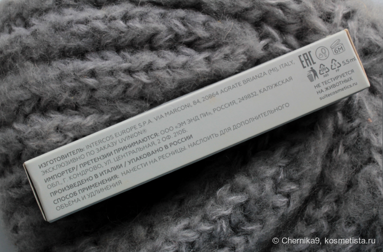 Номер оттенка указан сверху, хотя, думаю, что Юля задумывается о том, чтобы выпустить тушь в коричневом варианте, но пока такого продукта я ещё не видела. На коробочке можно прочитать состав туши.