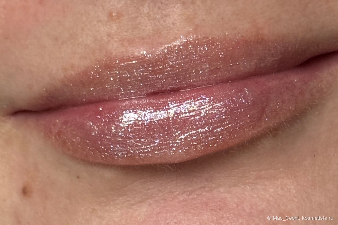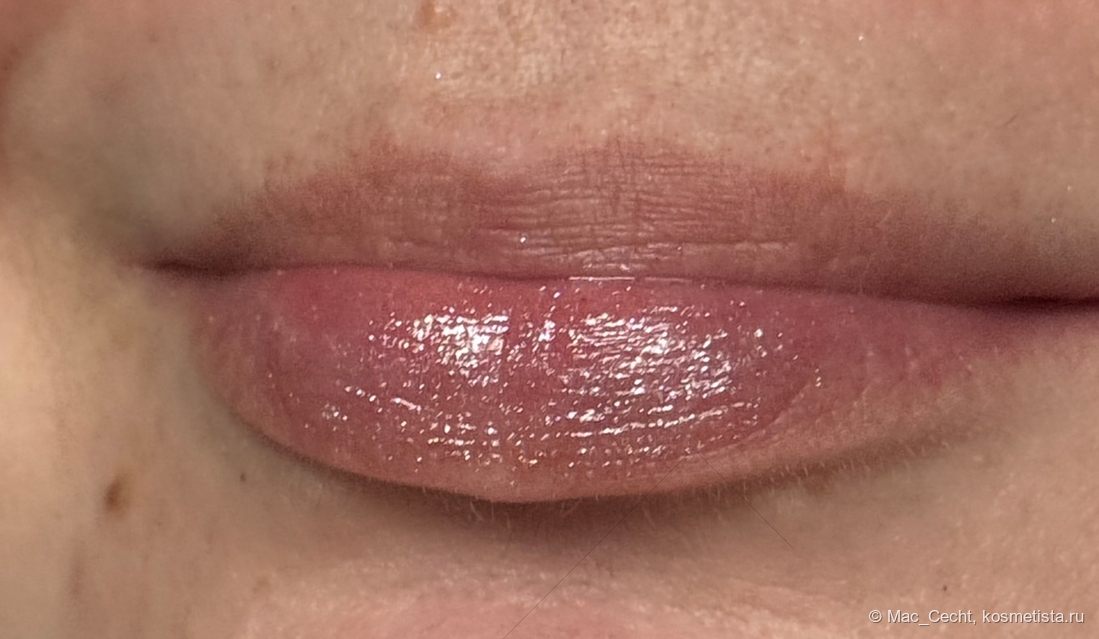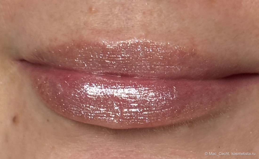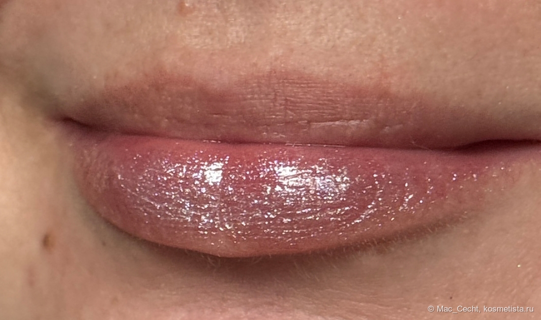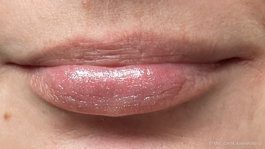 Симпатично выглядит с одного слоя, но в несколько появляется активный влажный финиш, что делает помаду еще красивее.