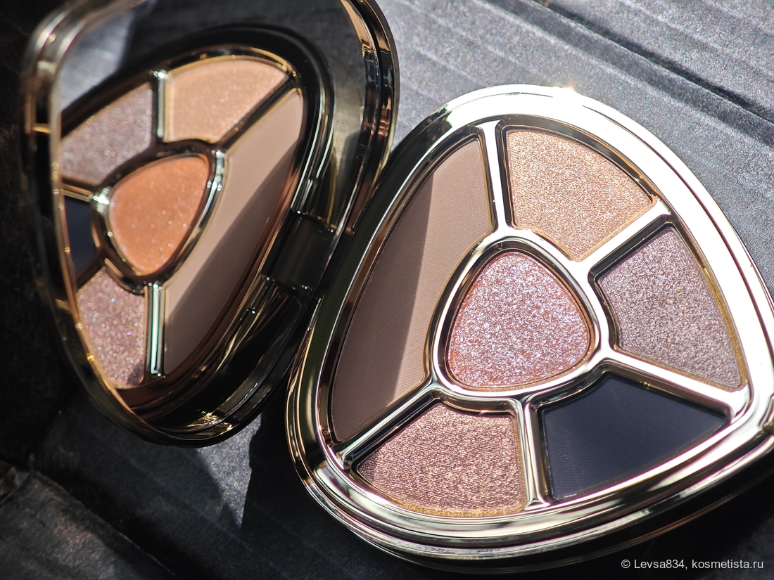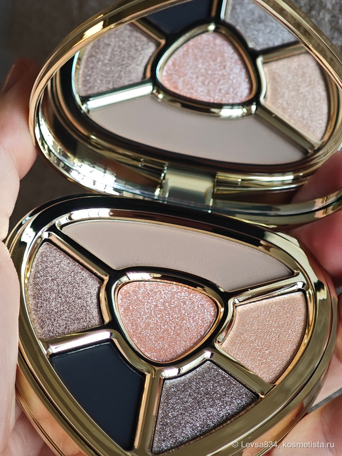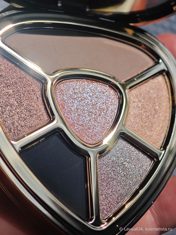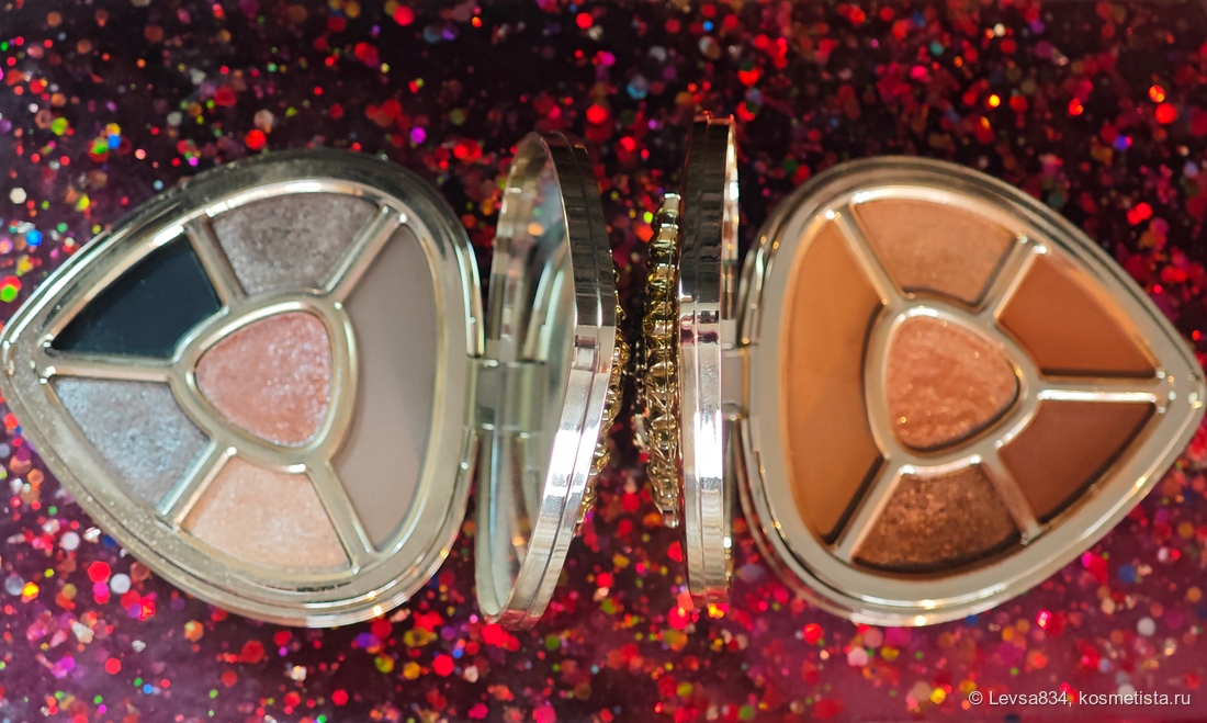 По формулам оттенков эта палетка немного отличается от коричневой сестрицы, здесь только два матовых, зато три металлика, в той было наоборот, три и два. В центре каждого сердца горит великолепный спаркл.