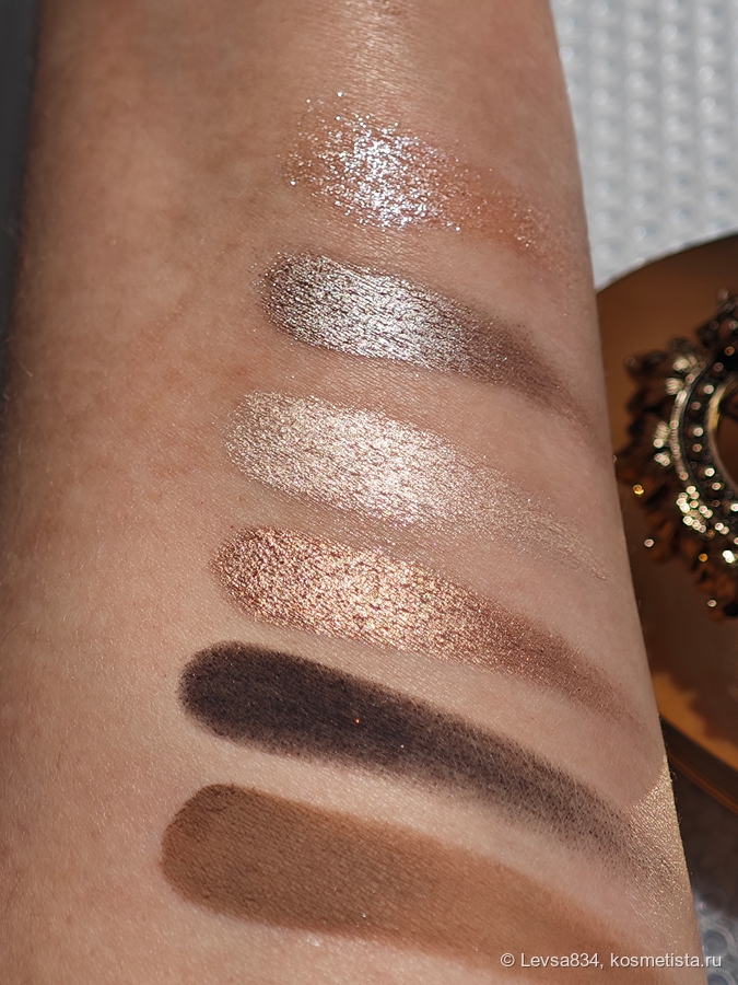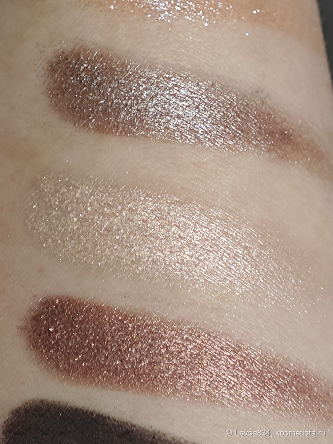 Про гамму палетки нельзя сказать, что она тёплая — это не так. И не скажешь, что она холодная — тоже нет. Серая? Вряд ли. Тусклая? Ха! Скучная? Нет, конечно. Гамма, которая подойдёт всем, даже девушкам с очень тёплым оттенком кожи. Эта гамма держит нейтралитет и дружит со всеми. И я искренне рекомендую эту палетку всем, кому дизайн упаковки пришёлся по вкусу. Качество теней приведёт вас в восторг.