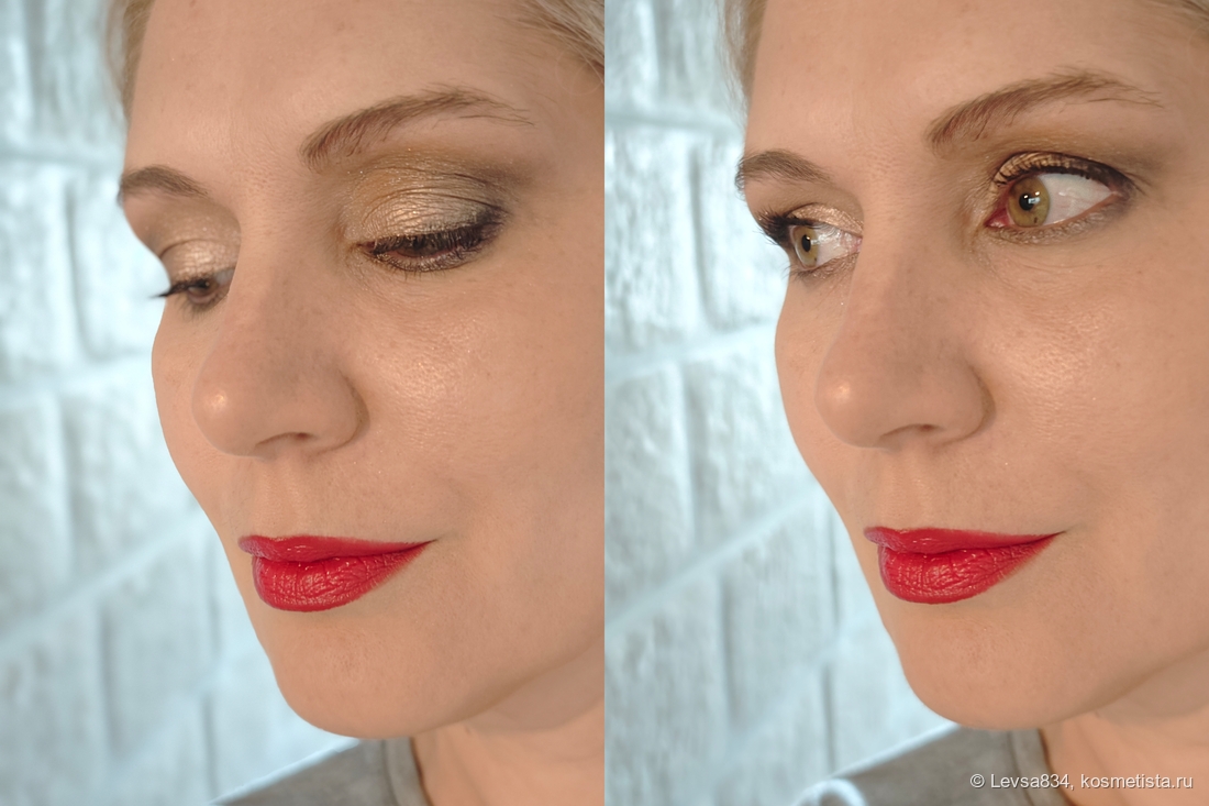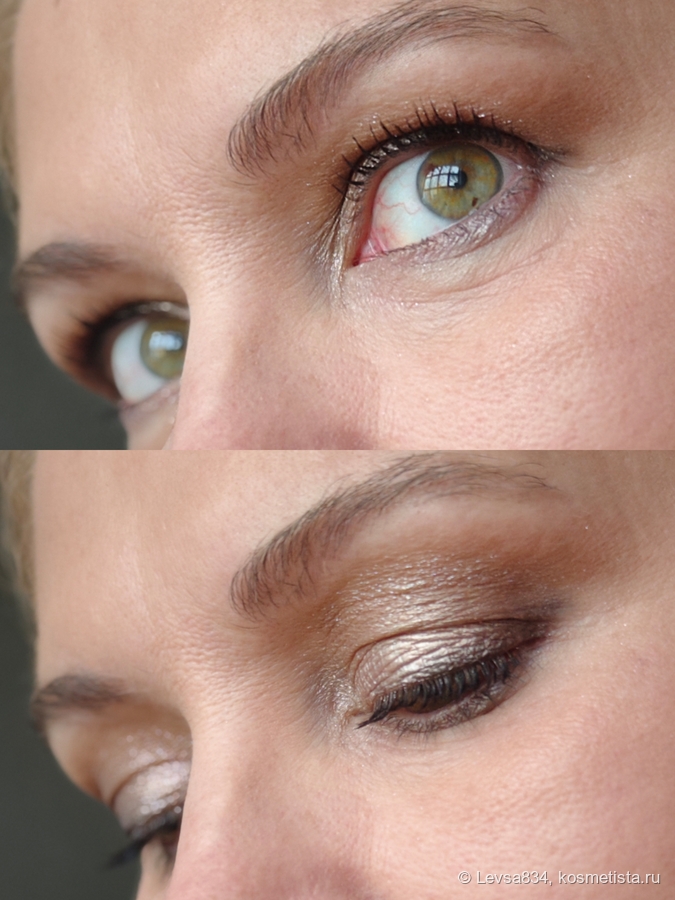 Тени стойкие, никаких изменений, ни осыпавшейся крошечки, ни потускнения, ни скатывания я не вижу до самого вечера, и это без базы. Никаких раздражений глаз, ничего. Высочайшее качество и уровень, к которому должны бы стремится все производители теней.