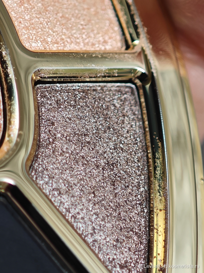 В палетке всё красиво, всё для меня идеально, и размещение, и форма рефилов, и золотистые высокие перегородки между ними.