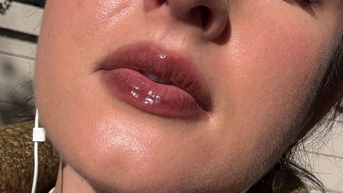 Контур все еще есть, губы затинтованы. В центре губ цвет сошел, но это не смотрится неопрятно. Это все еще «свои губы только лучше»