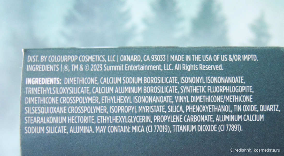 Надо ли делать лирическое отступление про то, что я являюсь большой фанаткой саги «Сумерки»?! Думаю, все и так понятно! Эти книги и фильмы пришлись аккурат на мою юность, и воспоминания о тех беззаботных деньках 2008-2010 годов до сих пор очень яркие. Поэтому, когда взрослая я увидела, что американский бренд Colourpop выпустил коллекцию, мне нужно было заполучить ее ASAP! А это был 2023 год и сами понимаете, что до нас она ехала бы вечность. Но, к счастью, тогда в Казахстан переехала моя подружка, и я попросила ее выкупить для меня несколько позиций. Разберем каждую в отдельности.