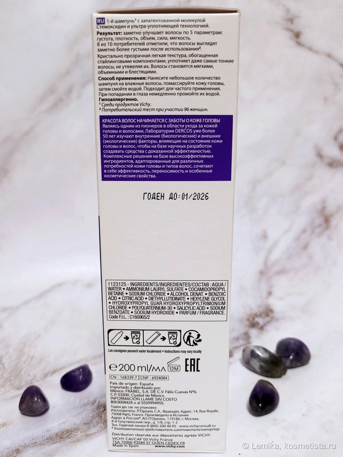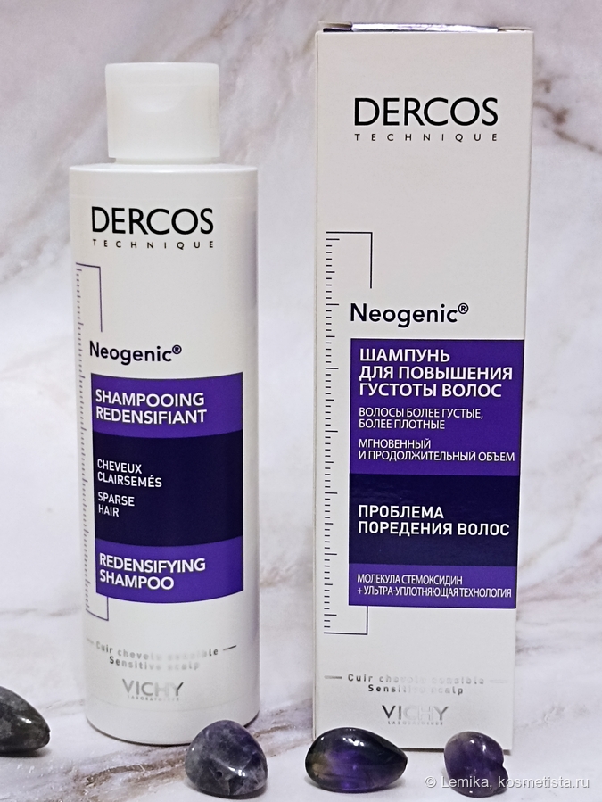 Для закрепления результата я сейчас использую шампунь для повышения густоты волос Vichy Dercos Neogenic Redensifying Shampoo, в составе которого также есть стемоксидин.