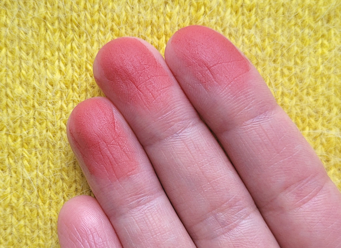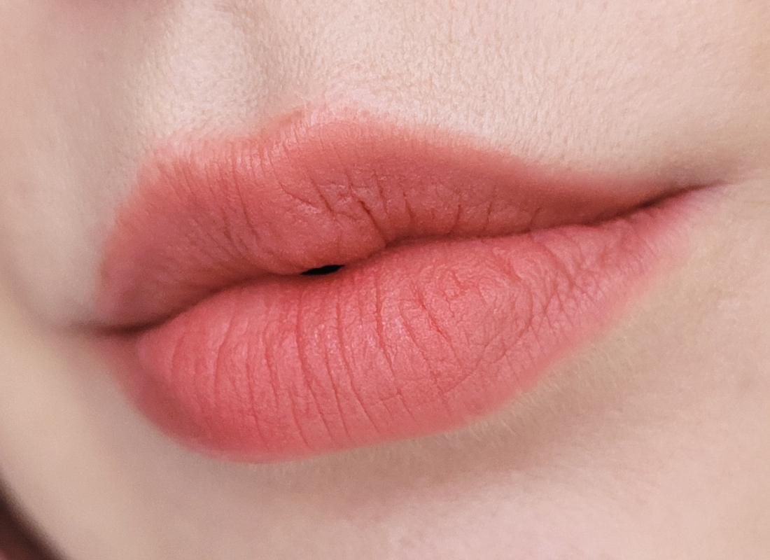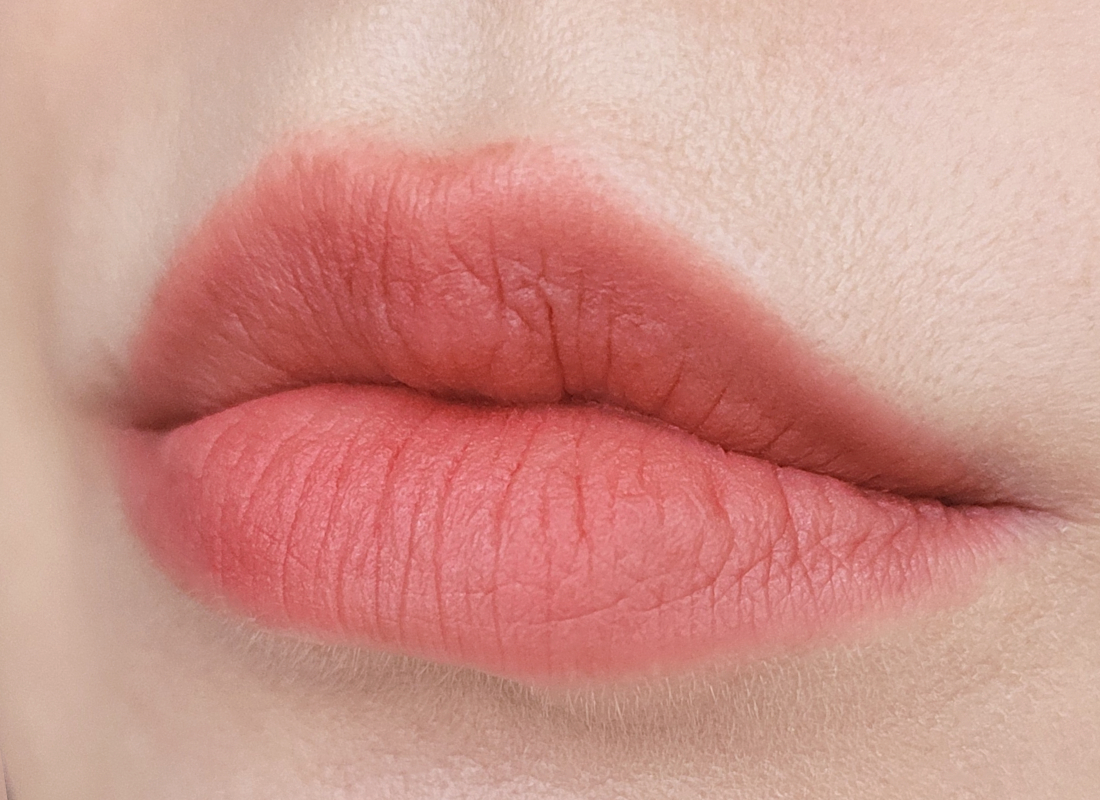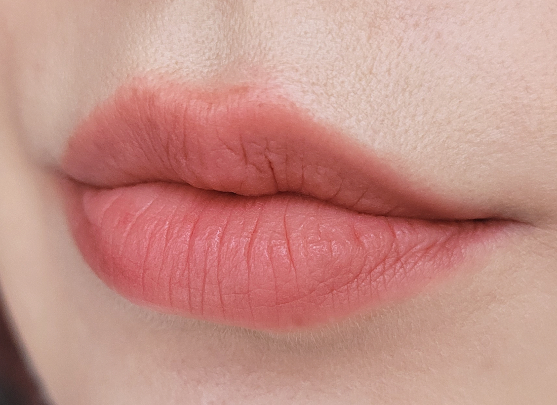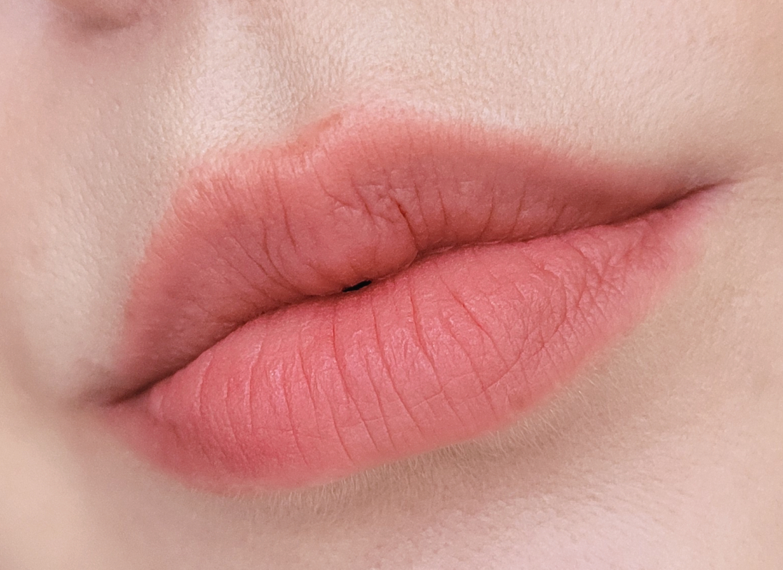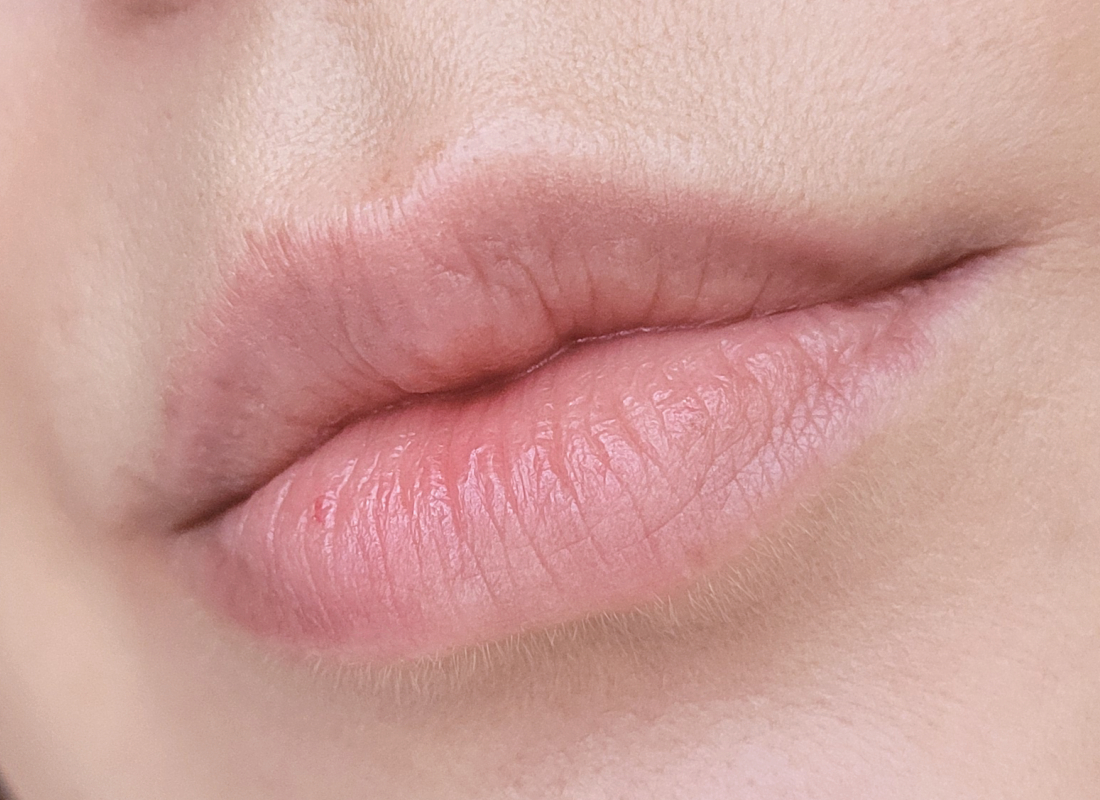 А теперь самое время поговорить про обещанный блюр. Даже на свотче видно, что у тинта есть склонность собираться в складочки. Конечно же, на моих рельефных губах, этот нюанс становится еще более очевидным.