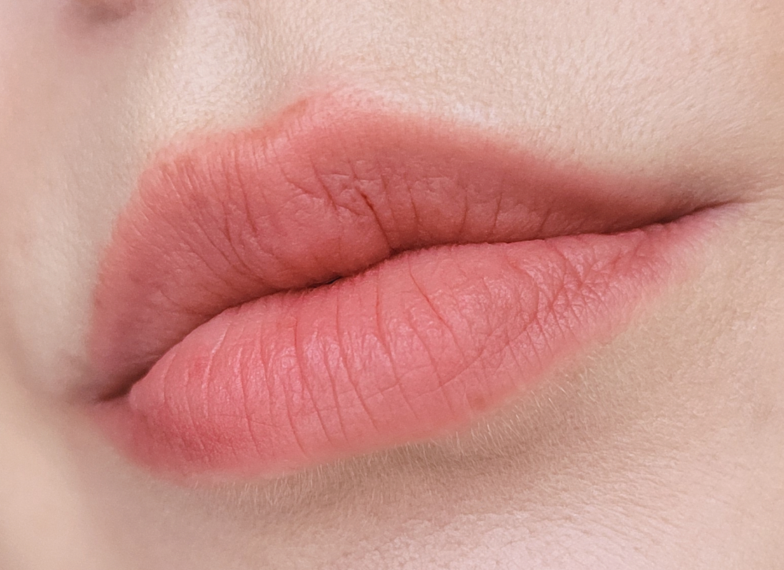 Нанесла тинт на неподготовленные губы в один легкий слой с выходом за контур.