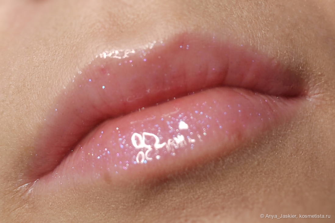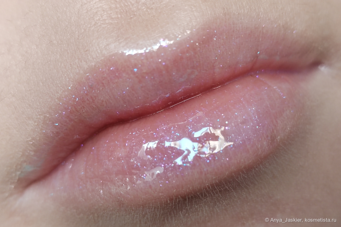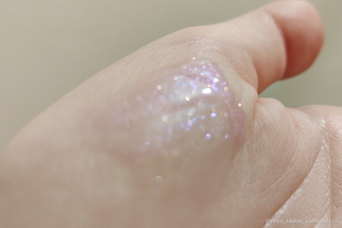 А внутри у него — искра, буря, безумие! Тысячи сверкающих серебристых блёсток переливаются синим, розовым и голубым. Основной цвет блеска — бледно-лиловый, пастельно-сиреневый — на губах практически незаметен, но вкупе с шиммером придает легкий выбеливающий эффект. Глянцевое покрытие зеркалит окружающие источники света, создавая эффект стекла, из-под которого весело переливаются мелкие диско-шары. Но при этом, Unicorn Blizzard остается нежным и скромным, не перетягивая на себя внимание.