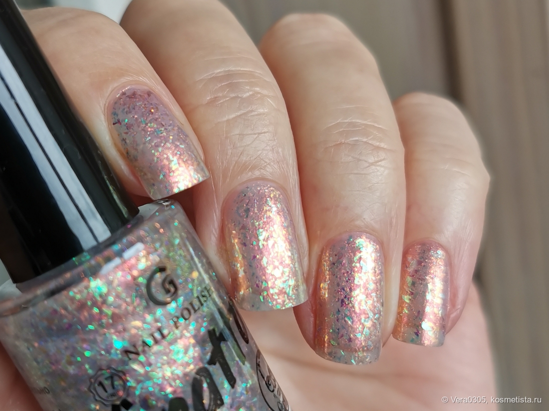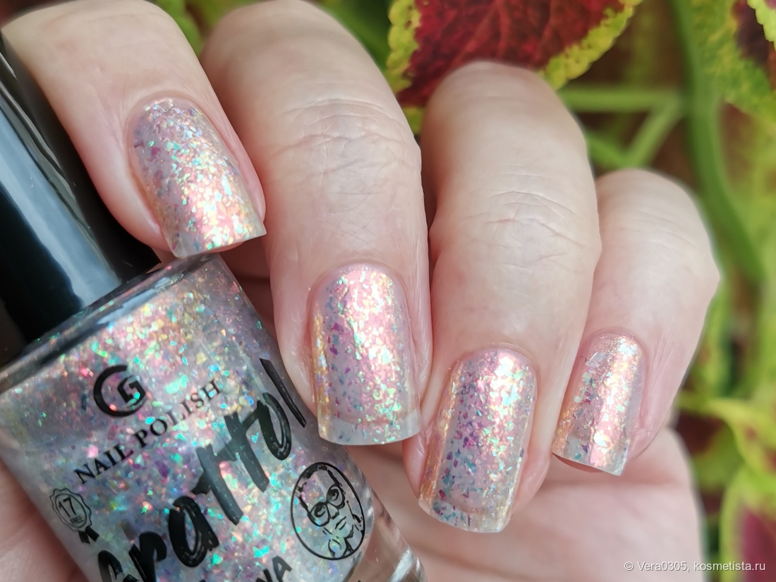 Этот лак охотно носила летом, потому что на солнце он искрился всеми цветами радуги. Но надо сказать, в электрическом свете он не менее красив, а значит, будет радовать мрачными осенне-зиминими днями.