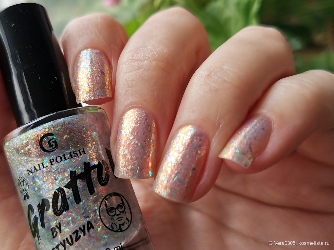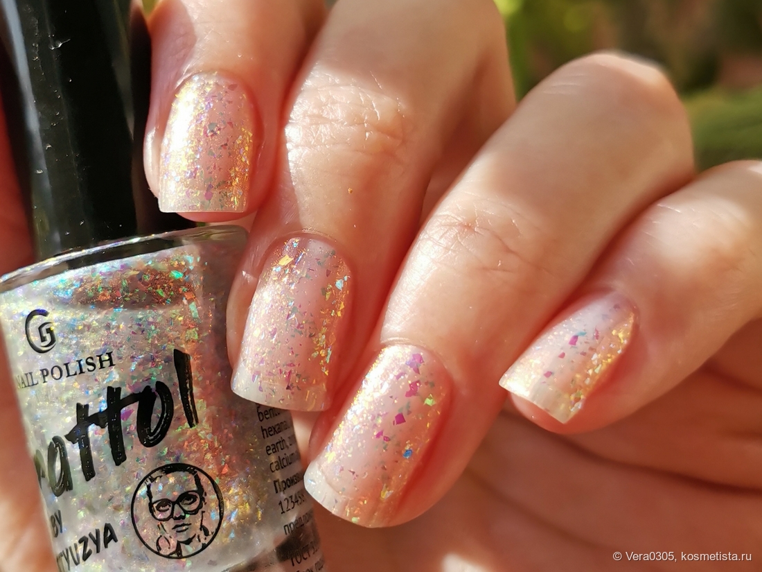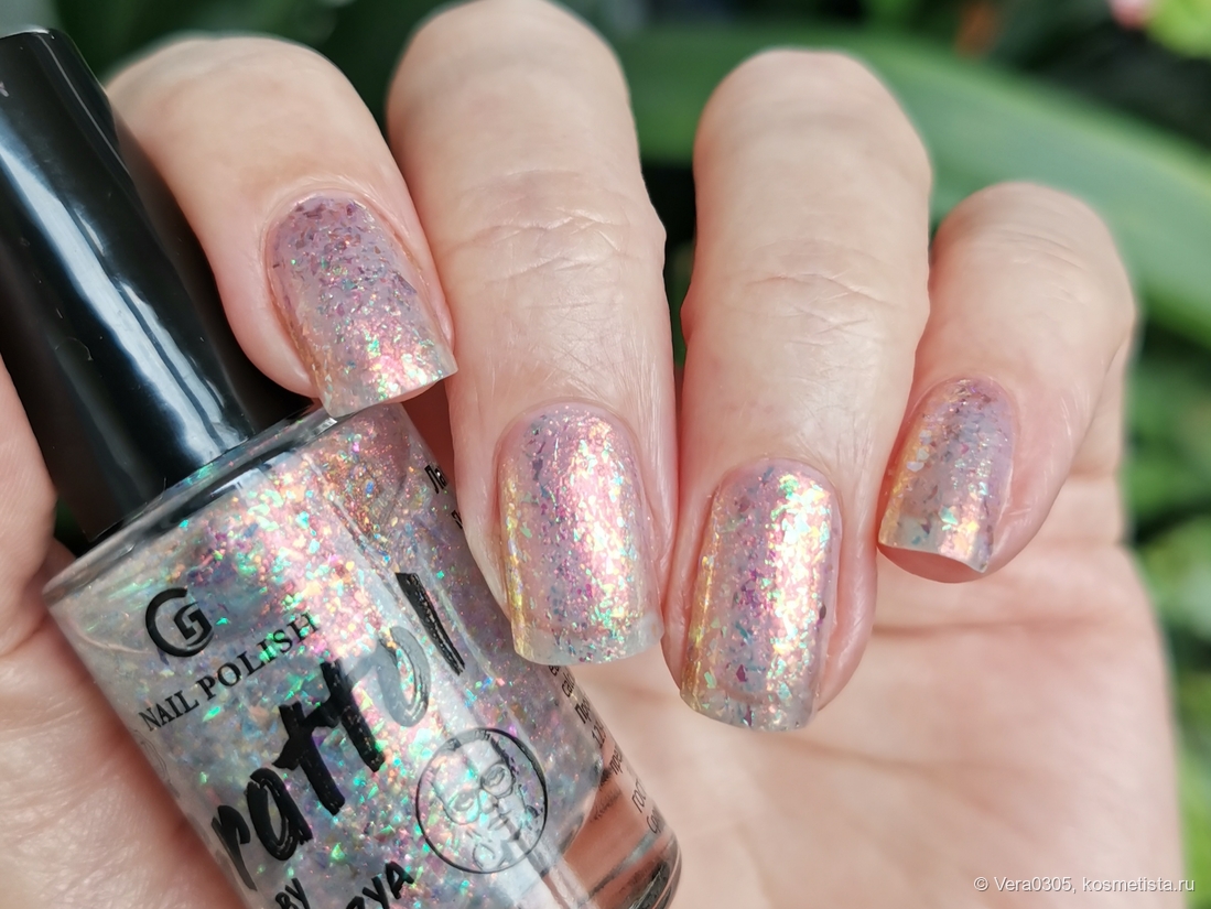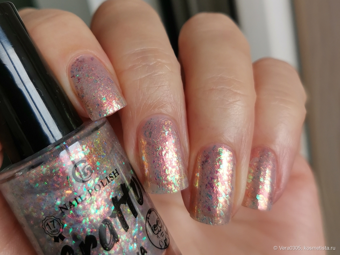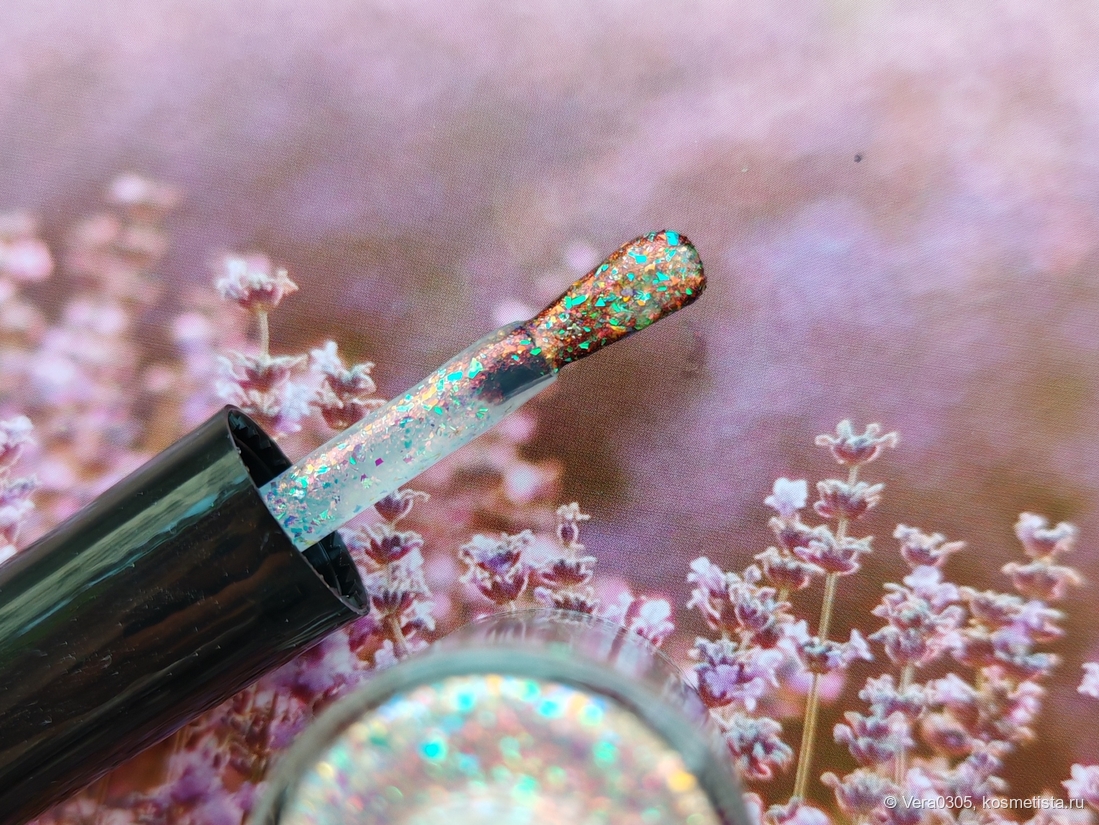 Текстура — прозрачное желе с разноцветной слюдой и мультихромным шиммером Аврора.