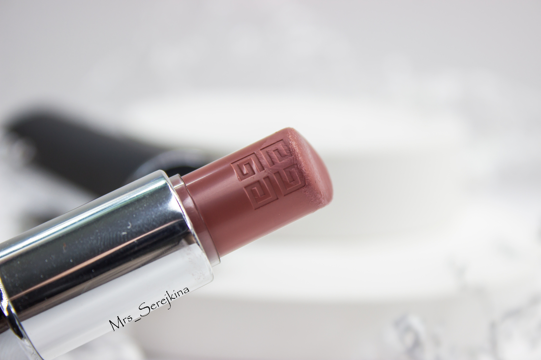Первой у меня появилась кремовая губная помада с полуматовым эффектом Givenchy Le Rouge Interdit Intense Silk в оттенке 110 Beige Nu. Уже и не помню, как выбирала — кажется, что все-таки вживую, поэтому и не прогадала с оттенком.