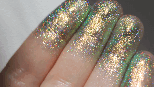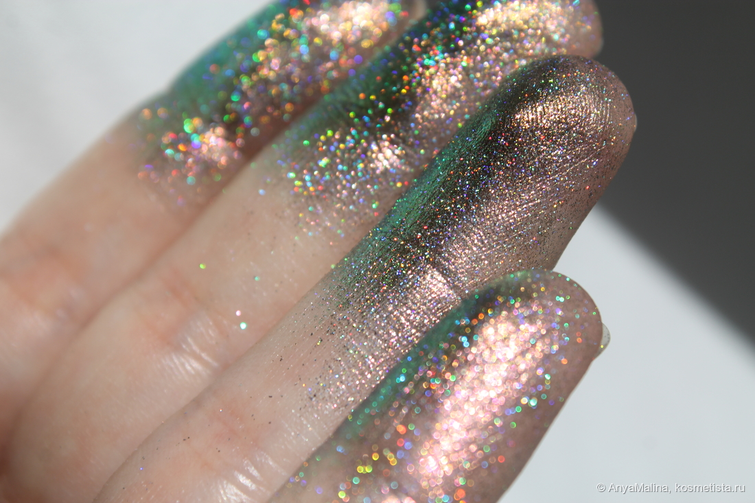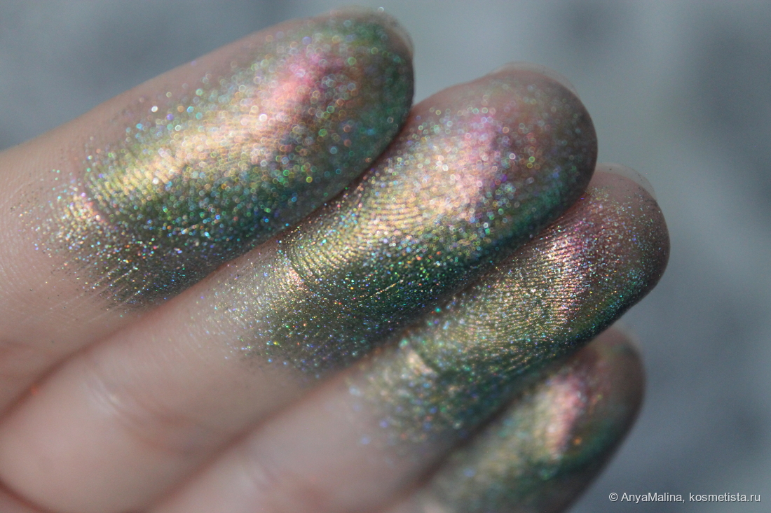 «Мультихромный голографик с переливом из золотисто-зеленого в изумрудный.»