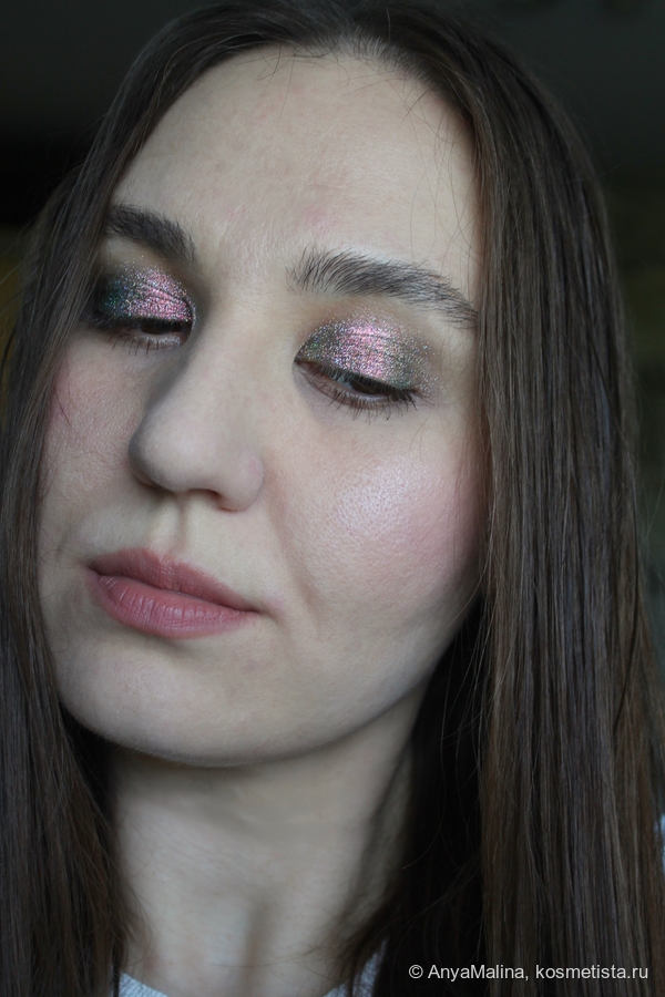 Демакияж обычный, наношу гидрофильное масло, массирую, смываю теплой водой, а дальше уже гель и там по схеме. Глаза у меня чувствительные, к большому удовольствию никак не отреагировали на этот пигмент. Поэтому делюсь с вами не только своими восторгами, но и искренней рекомендацией такой сияющей красоты, праздники не за горами, точно будет востребованным.