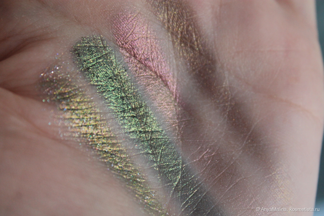- Могут при нанесении осыпаться единичные блестки, поэтому консилер под глаза лучше использовать уже после теней.