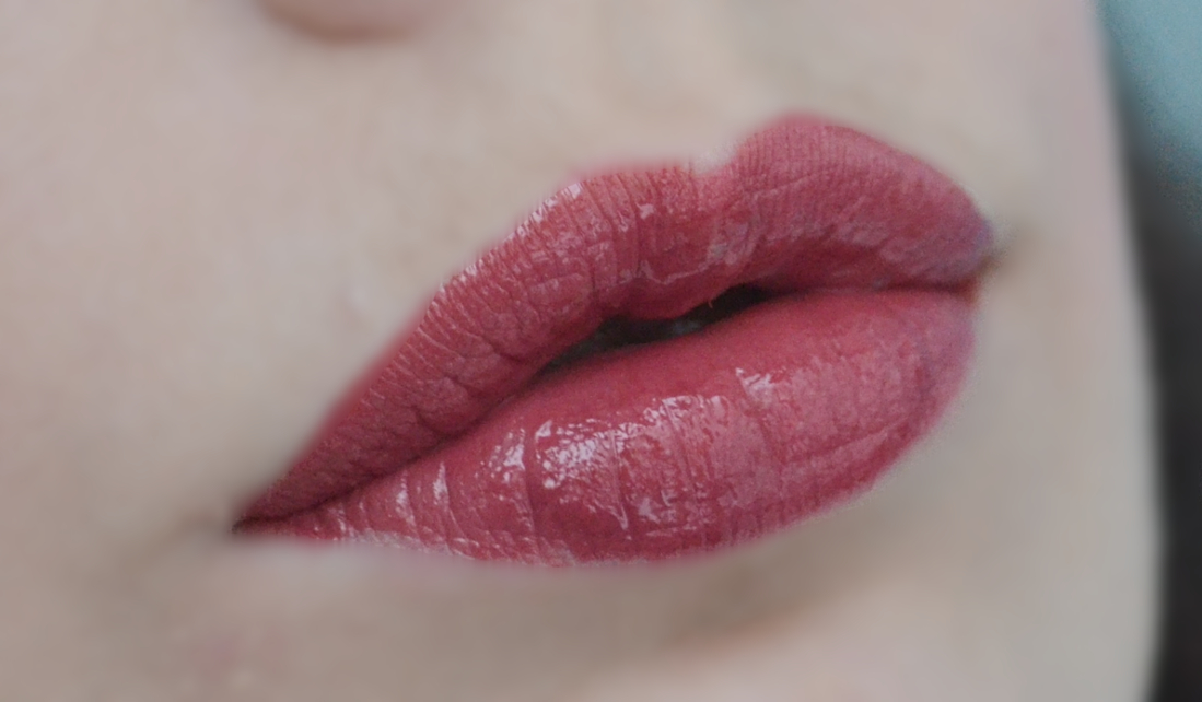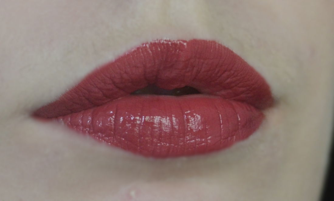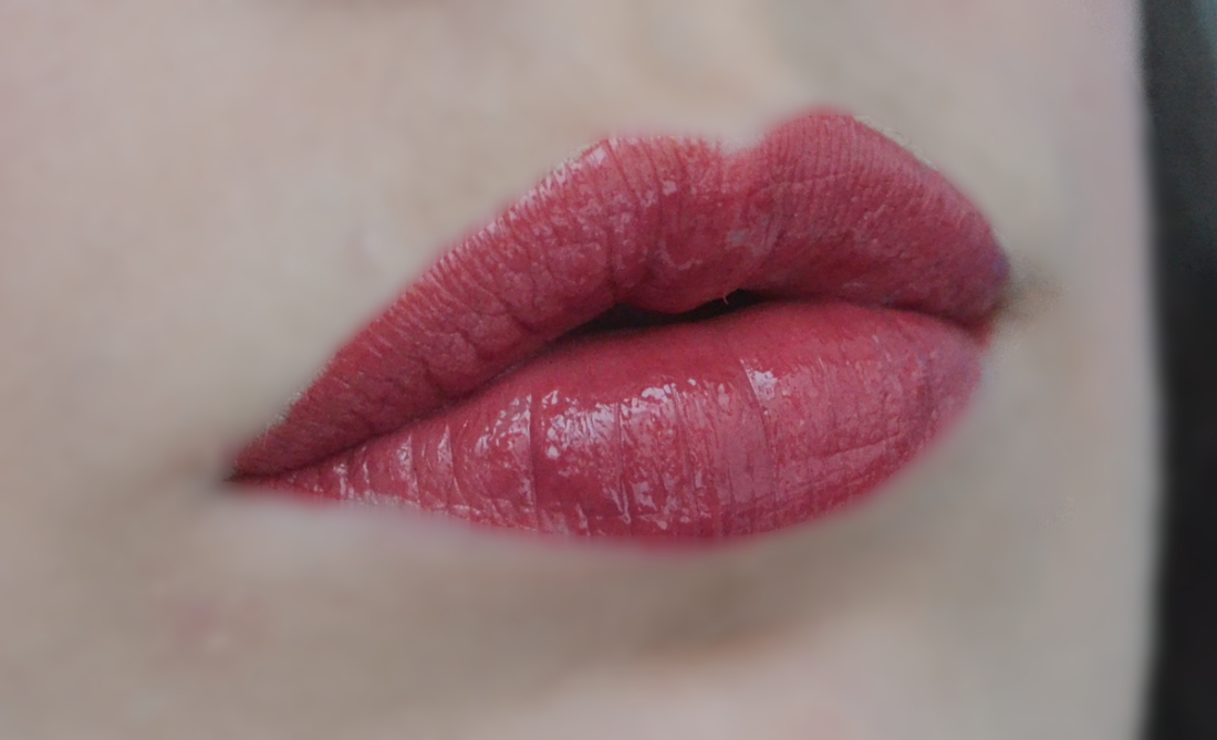 Помада довольно быстро фиксируется, но при этом покрытие остаётся глянцевым. За счёт этого, конечно, слегка отпечатывается на посуде, но стойкость у нее все равно убойная.
