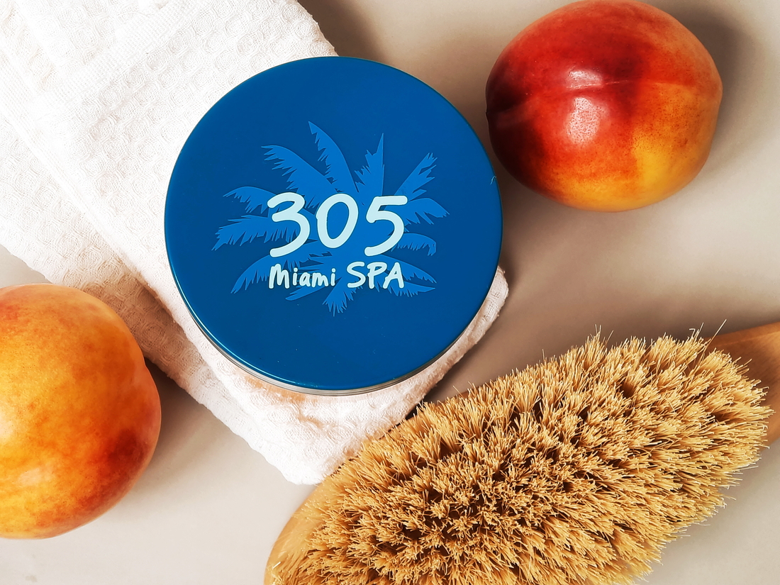 С брендом 305 Miami Spa я знакома по нескольким продуктам, в частности средства для волос, гели для душа. А скраб понравился по описанию, да и составы у бренда довольно хороши. А самое главное — средства имеют очень классные парфюмированные отдушки, которые хорошо мне поднимают настроение!
