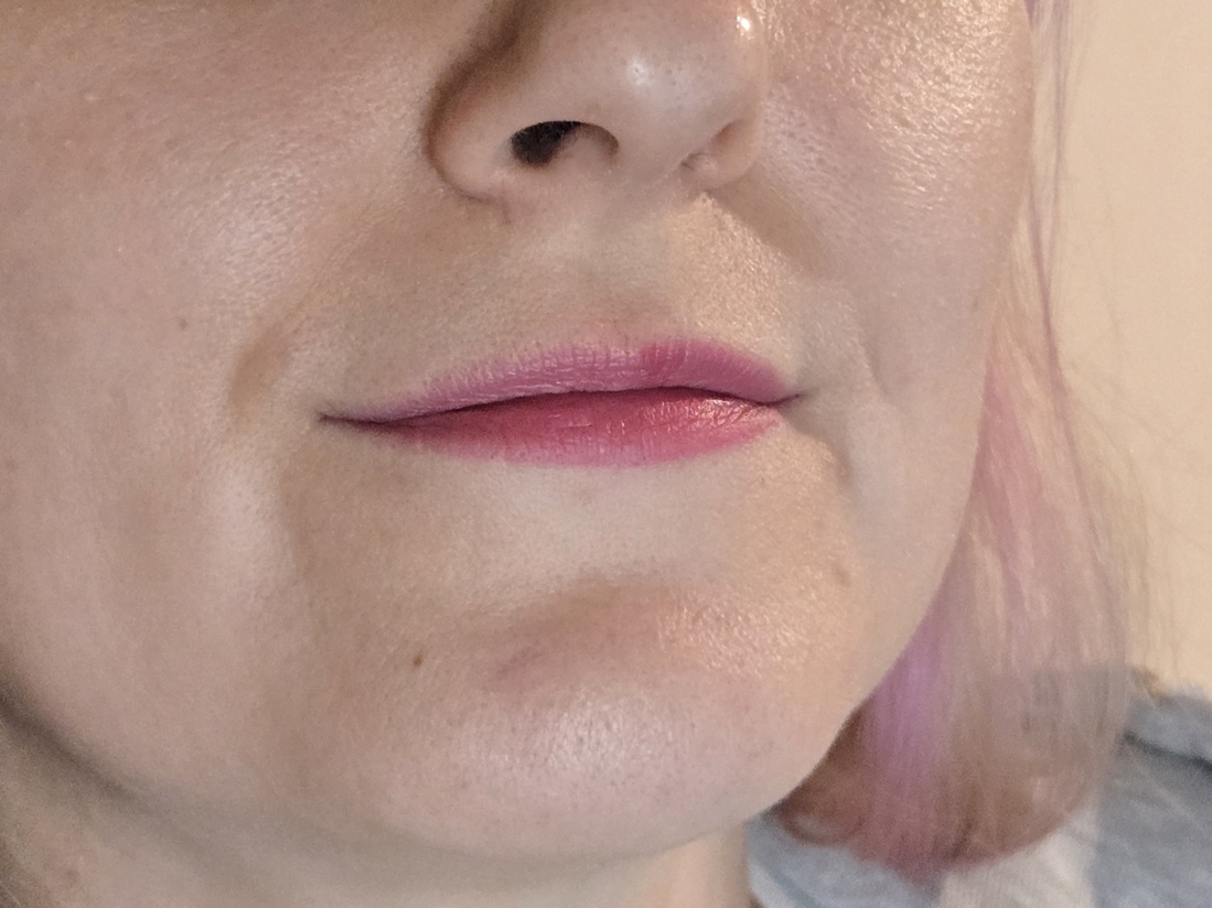 Однако с губами бальзам сливается идеально, практически не ощущается, хотя на ощупь жирный, а действует как обычный вазелин: увлажняет, пока на губах.