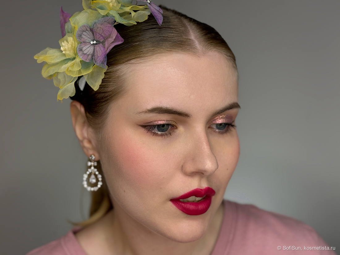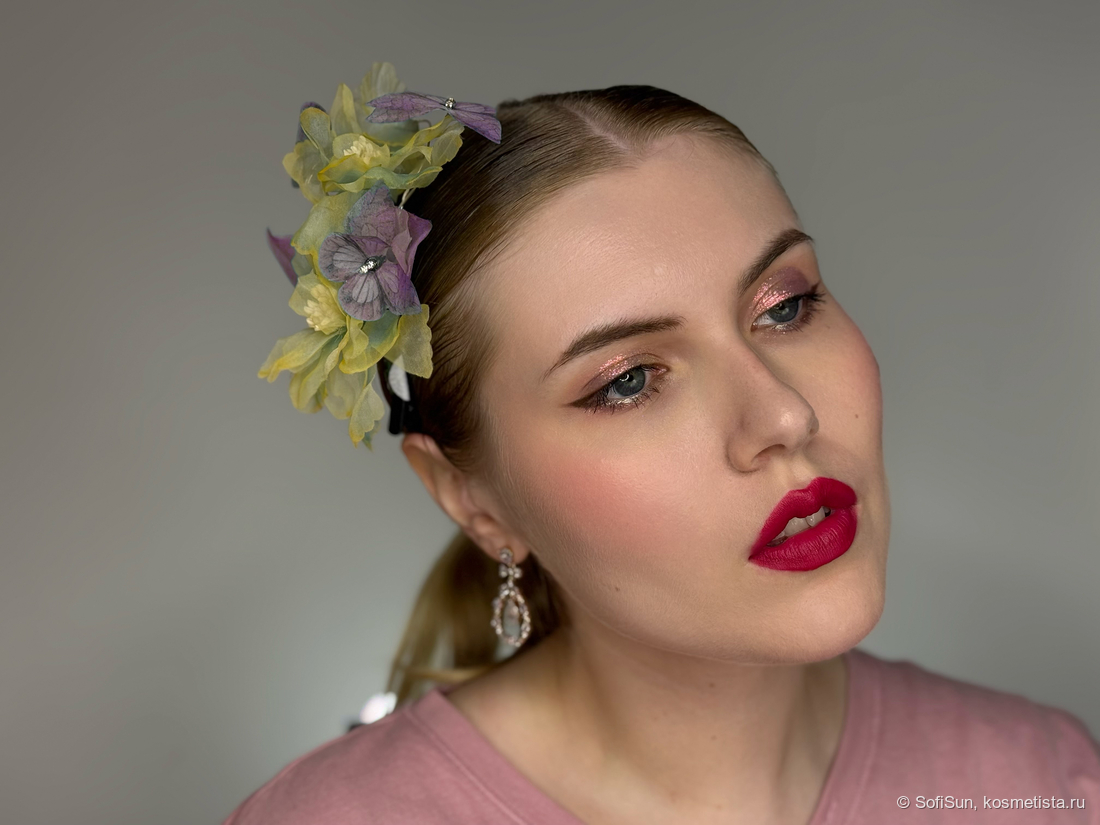 В первом макияже я использовала бронзер, розовые румяна и хайлайтер. Наносила пушистой кистью для максимально натурального эффекта. Розовые румяна слегка затеплились бронзером, получилось нежно и интересно.