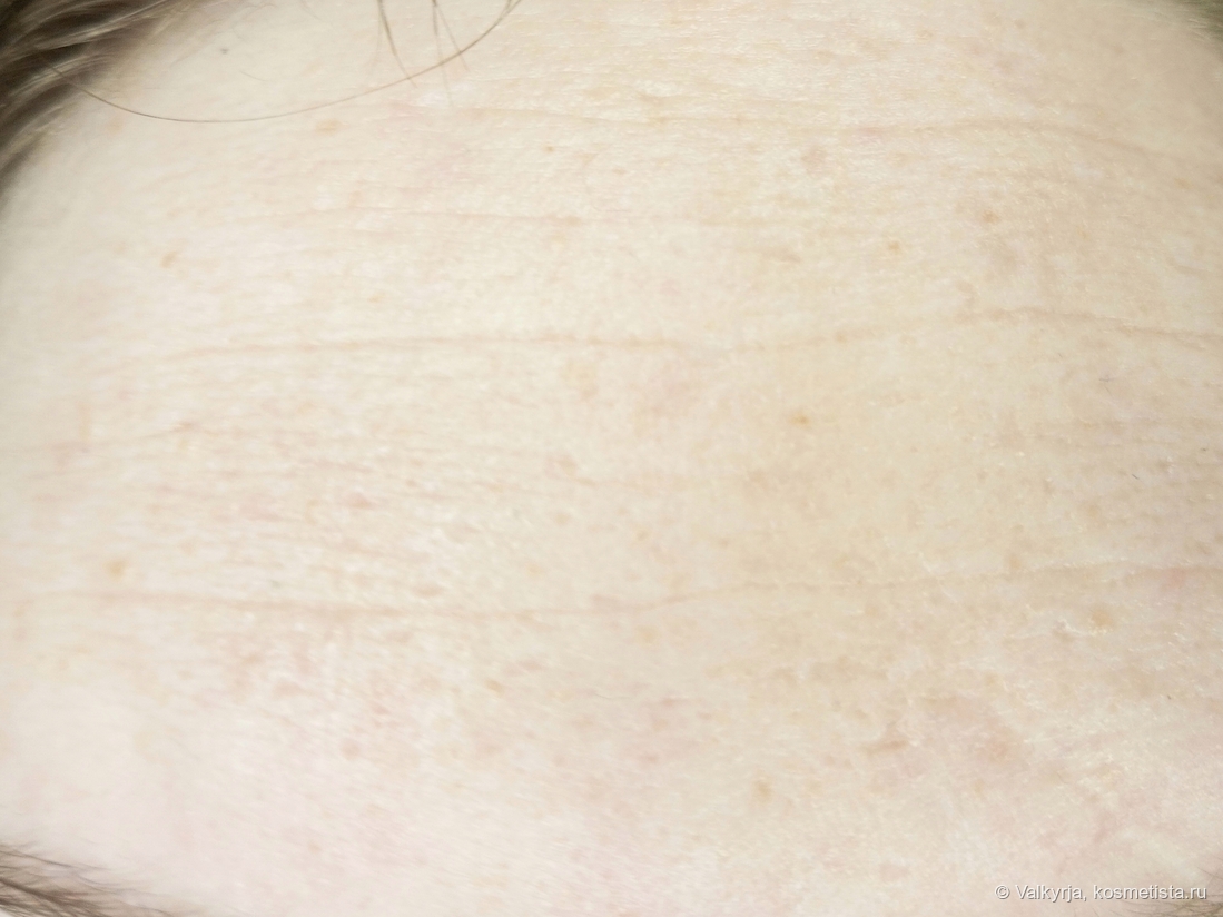 Фото кожи в состоянии до сыворотки, точнее до курса сыворотки особо не будет. Выше — не лучший вариант, когда была и сыворотка, и стресс с отоплением. Также у меня есть морщины на лбу, которые появились ещё лет в 15-16. Служат неким индикатором степени увлажнения кожи, и по ним я вижу, что состояние кожи на этой сыворотке не самое печальное (из тех, что видела в зеркале), но и отличным назвать язык не повернётся.