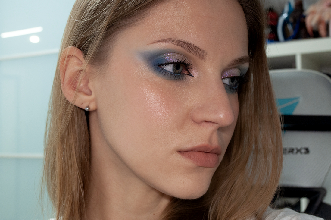 Подходят к любому макияжу, и к довольно холодному, как на предыдущей фотографии, и к откровенно теплому, как ниже (из-за разницы в освещении он не кажется таким уж теплым, но, поверьте, он очень теплый!!). Тут кожа в хорошем состоянии, так что и легли они идеально, ничего не подчеркивая.