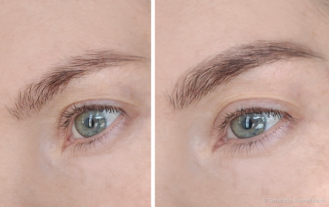 Второй плюс: пигментация средняя, насыщенность оттенка снижена, поэтому не будет эффекта татуажа или искусственных бровей.