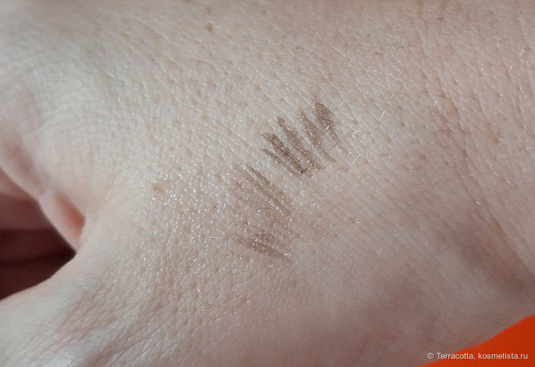 Третий плюс: конкретно этот оттенок какой-то базовый, несмотря на то, что волоски моих бровей почти черные, он сливается с моими бровями, дорисовывая недостающие волоски и увеличивая объем.