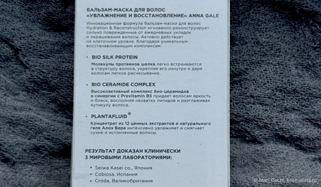 Восстанавливающая бальзам-маска для волос Anna Gale.