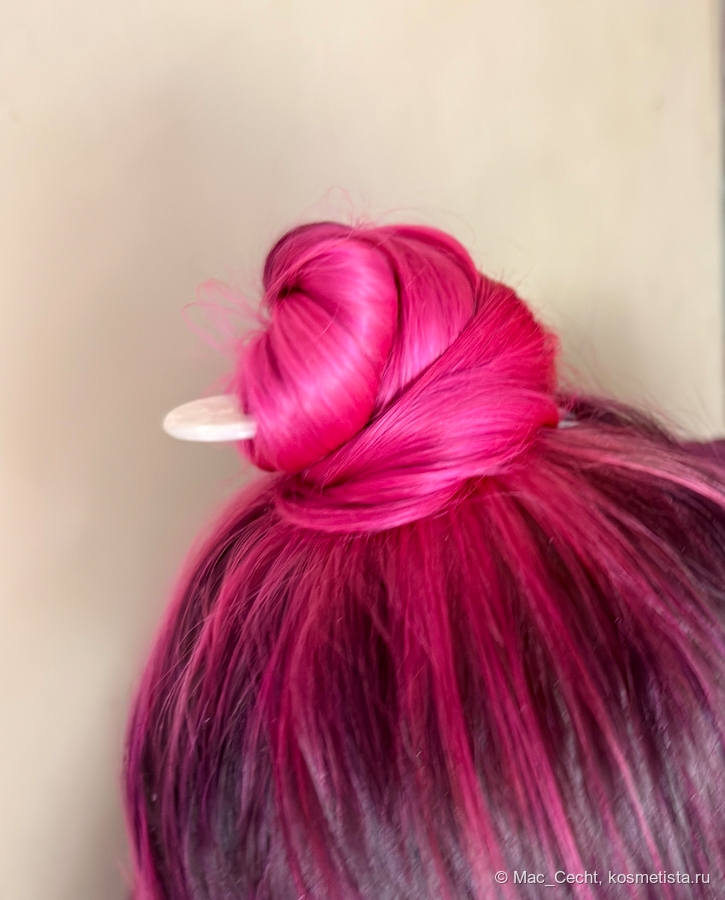 - хорошая фиксация — пучок можно сделать и более расслабленным, а ещё я прекрасно сплю в такой заколке. Я постоянно верчусь, пучок при этом не треплется и не распускается.