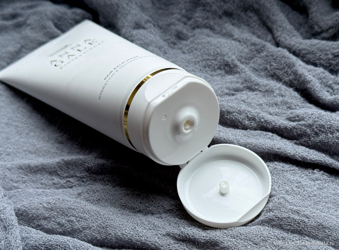 Консистенция маски нежная, сливочная, кремовая. Она не тает на коже, её не придётся ловить по всей ванной, но и не тугая, которую сложно растянуть по волосам.