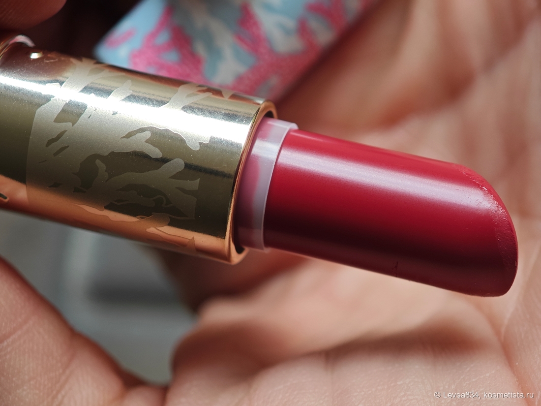 Стик помады сделан в традиционной для бренда форме с широченным полукруглым срезом, которым, однако, удобно прорисовывать контур.
