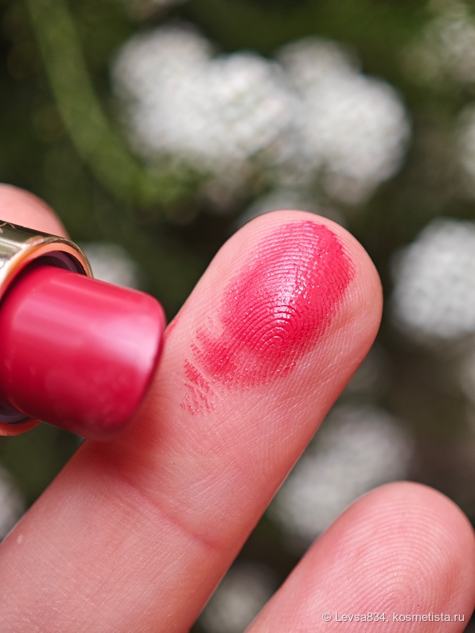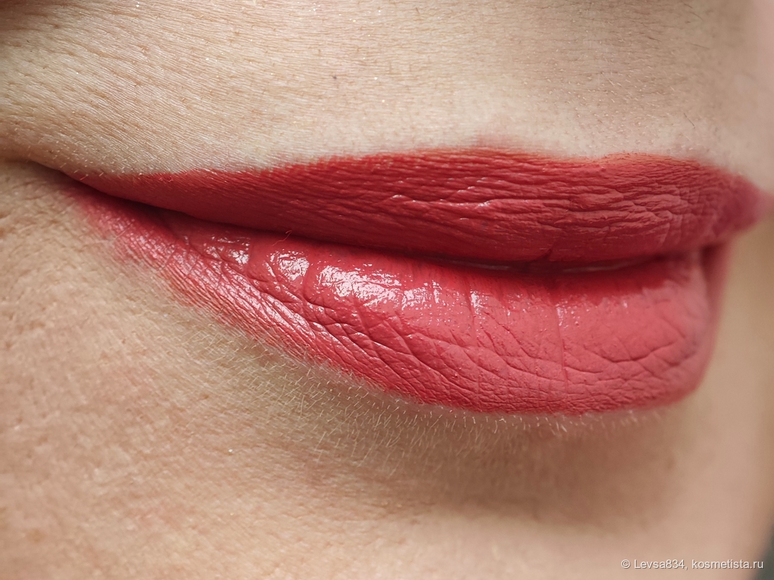 Что я знаю точно, так это то, что (простите меня, в русском языке так много шуршащих и хрустящих звуков, што-што-што-што, что получился небольшой перебор с ними в одной короткой фразе), так вот, что помада очень комфортно носится на губах, она увлажняет и питает кожу губ, обволакивает и залечивает сухие участки кожи (но может их акцентировать, увы, яркий цвет пигмента обязывает), а после демакияжа оставляет губы мягкими. Рельеф губ не подчёркивает. Финиш сочный, блестящий.