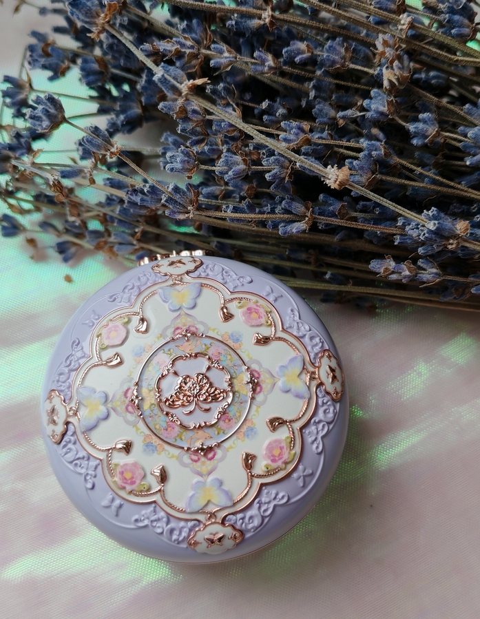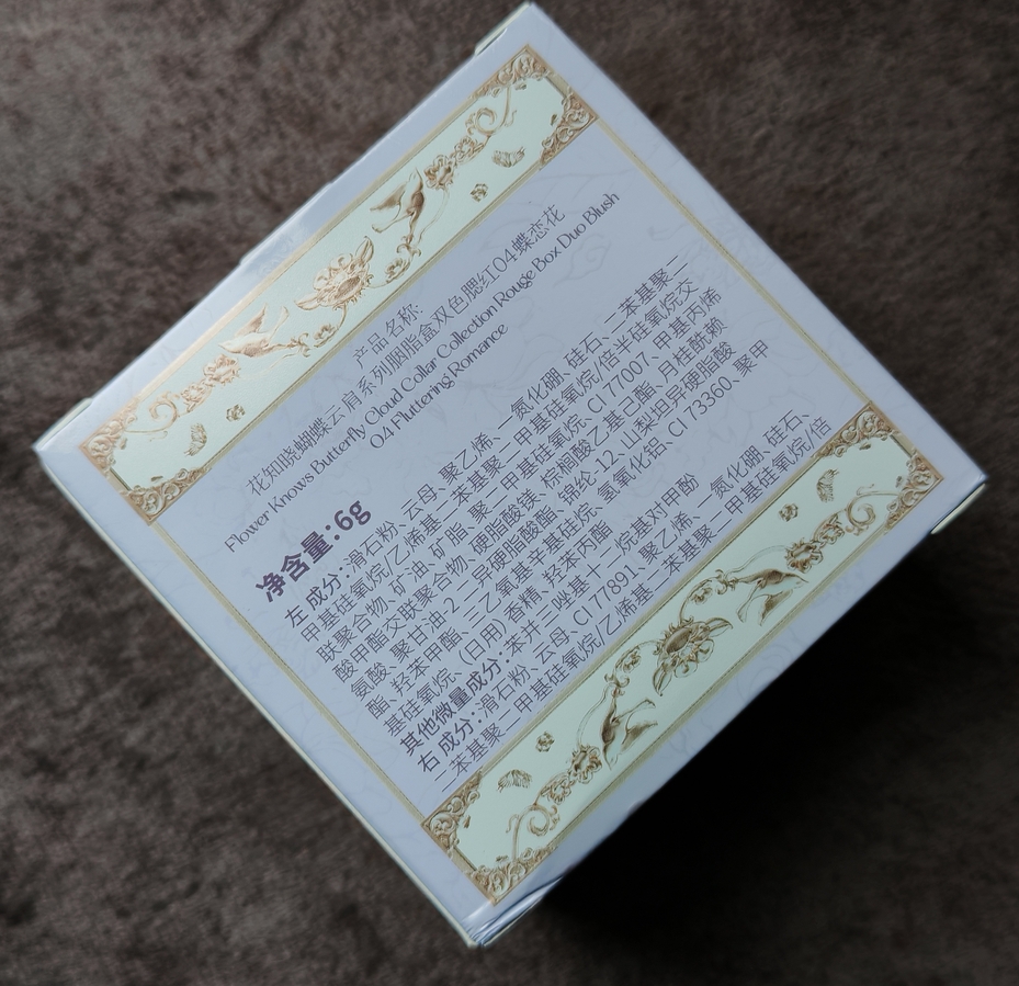 Румяна находятся в картонной коробке, которая нежно оформлена.