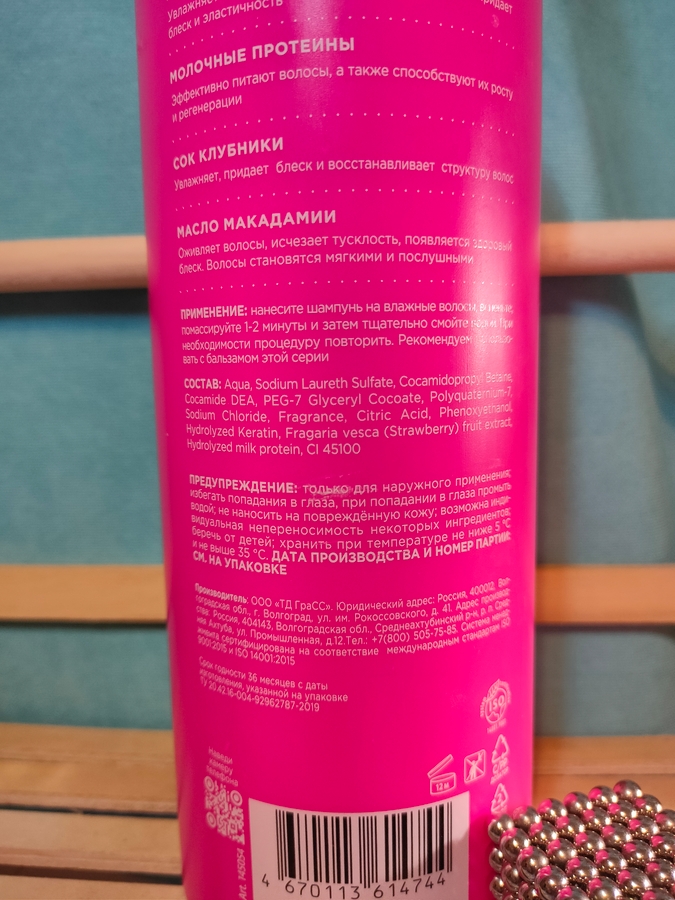 Из активных компонентов тут молочный белок, экстракт клубники и кератин. Не густо конечно, но мы помним, что это очень бюджетное средство.