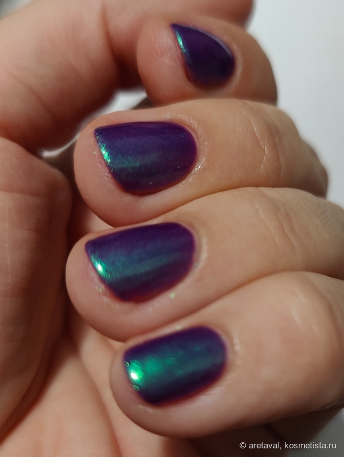 Итог. Лак очень красивый, но вот как будто что-то с ним не так. Не могу полностью объяснить. Но вот как будто шиммер выглядит дешево. Слишком крупные частицы, что ли, или слишком сверкучий. Но для своей ценовой категории лак, конечно, огонь. Теперь очень хочется сравнить этот лак (а также похожий шиммерный мульхром Tyrranopurple X c более дорогими инди лаками).