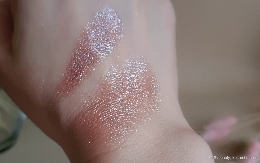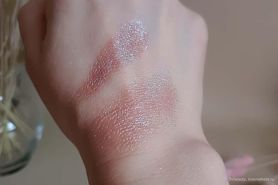 Мне понравились оба оттенка теней. Тени обладают невероятным сиянием, от которого невозможно оторвать взгляд. По текстуре они не сухие, но и не слишком влажные — что-то среднее.