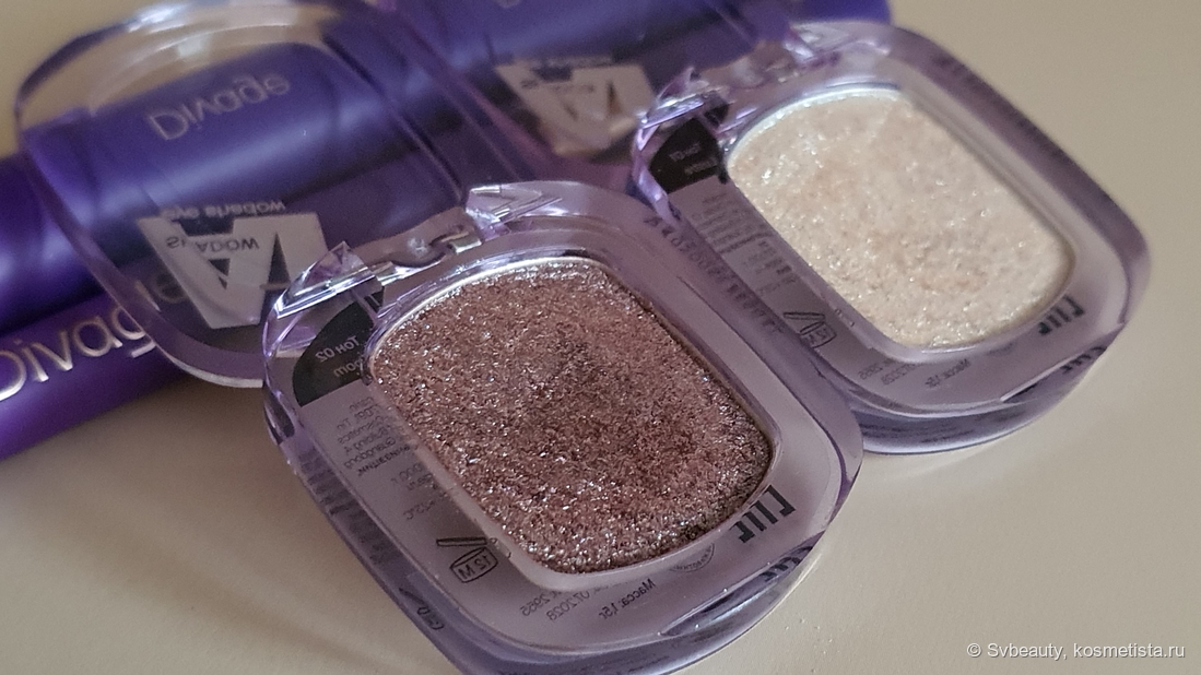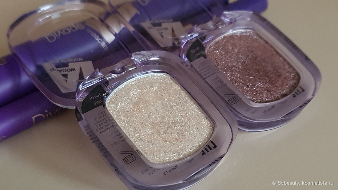 1. Тени для век с эффектом влажного сияния Divage Al-Shadow. Оттенки01 «Тёплое белое сияние» и 02 «Розовое сияние»
